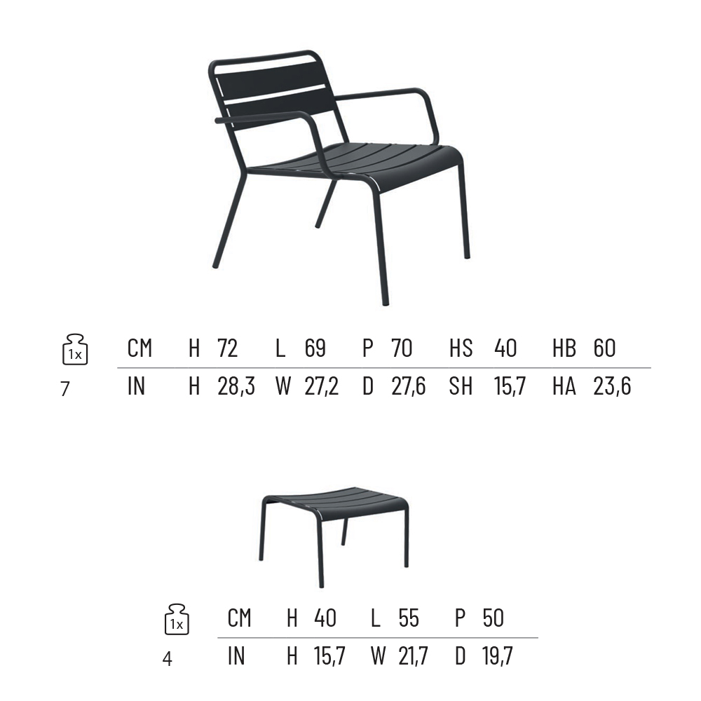 • Fußstütze : L 55 x T 50 x H 40 cm.