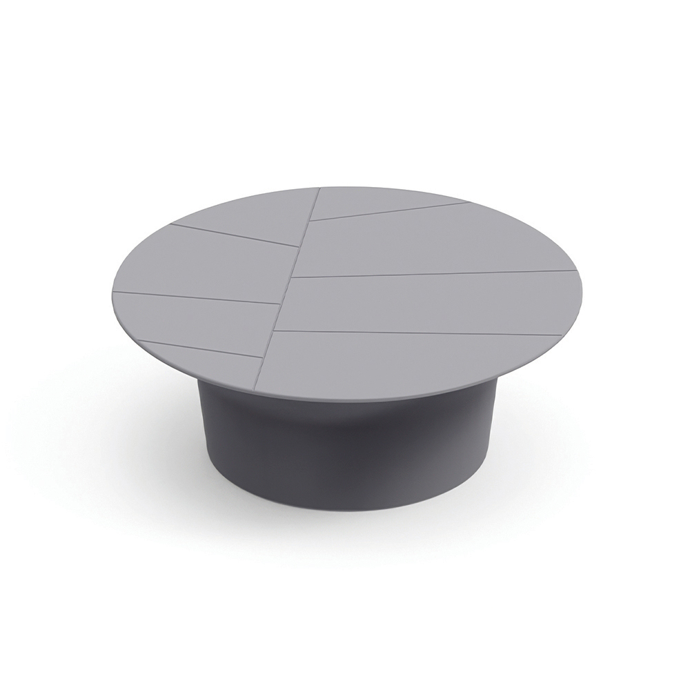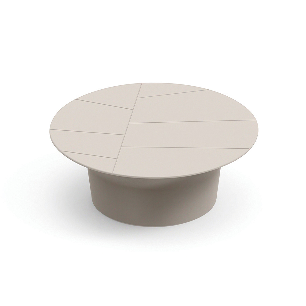 Dieser Couchtisch besticht durch seine schlichte, runde Form und ausgewogenen Proportionen und passt somit perfekt in moderne Außenbereiche. Die mit linearen, geometrischen Einschnitten verzierte Tischplatte erzeugt einen raffinierten grafischen Effekt, der die Oberfläche zusätzlich aufwertet.