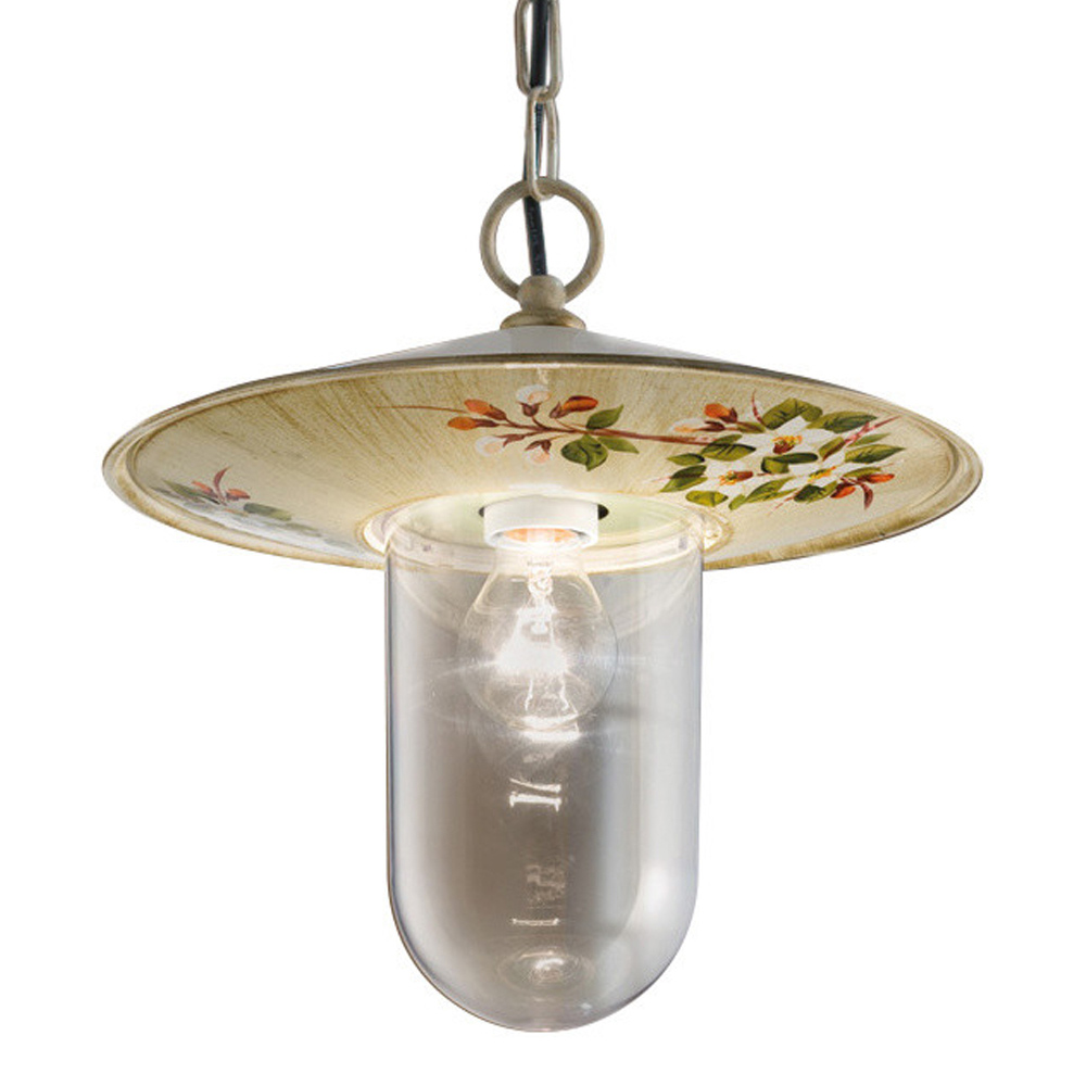 Diese Pendelleuchte für den Garten besteht vollständig aus Aluminium mit einem handgemalten Blumendekor für einen klassischen und harmonischen Stil zwischen Form und Farbe.