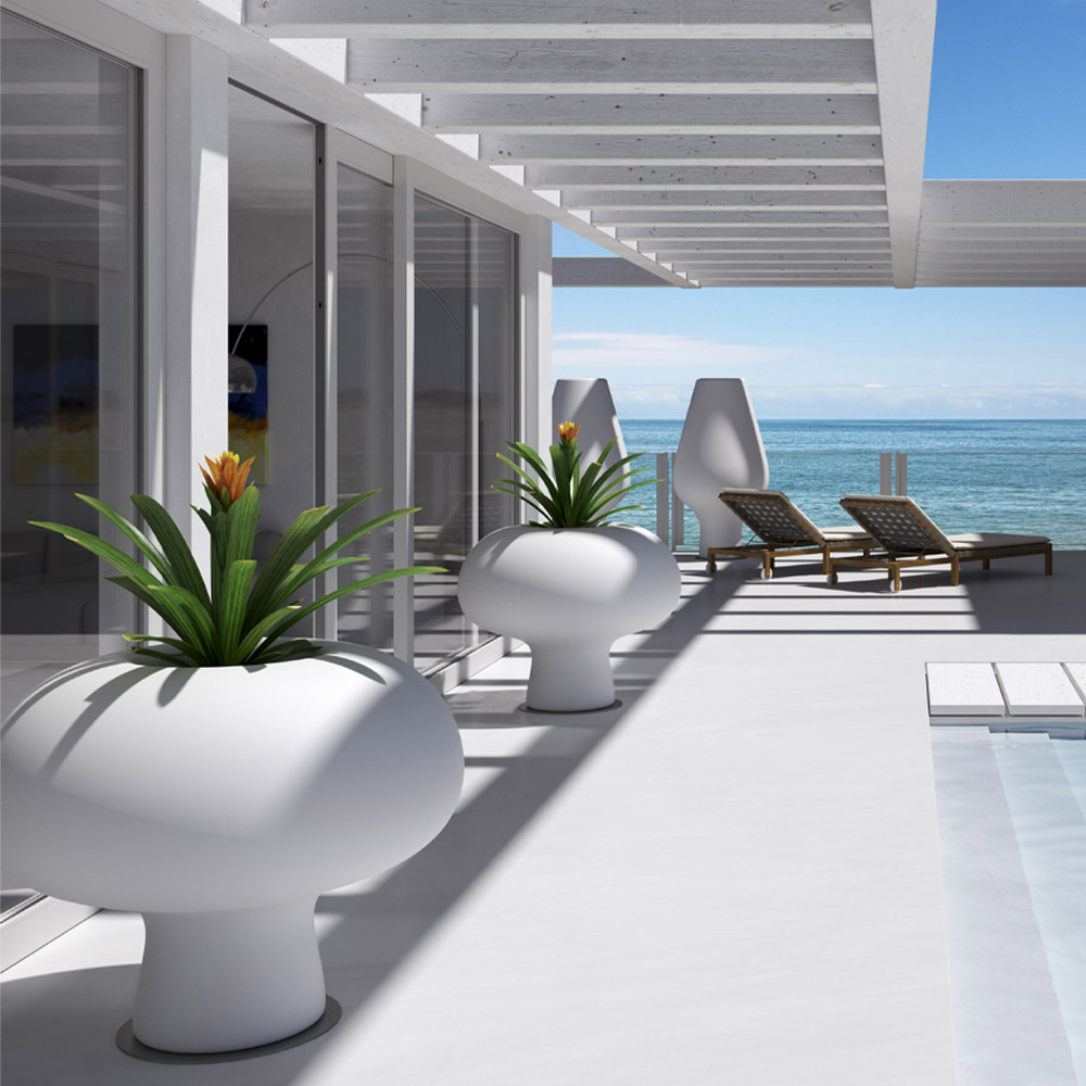 Leuchtende Outdoor-Vase aus undurchsichtigem Polyethylen mit LED Made in Italy.