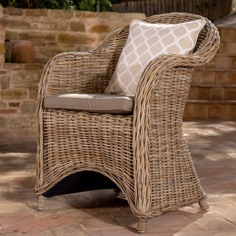 Outdoor Lounge Set bestehend aus 2 Sesseln , Sofa und Kaffeetisch aus handgeflochtenem Kubu mit Standard Sitzkissen inklusive in der Standard " Grau " Ausführung. Kubu ist ein natürliches Material, das zu den resistentesten unter denen gehört, die man in der Natur finden kann, das aber immer sehr leicht bleibt.