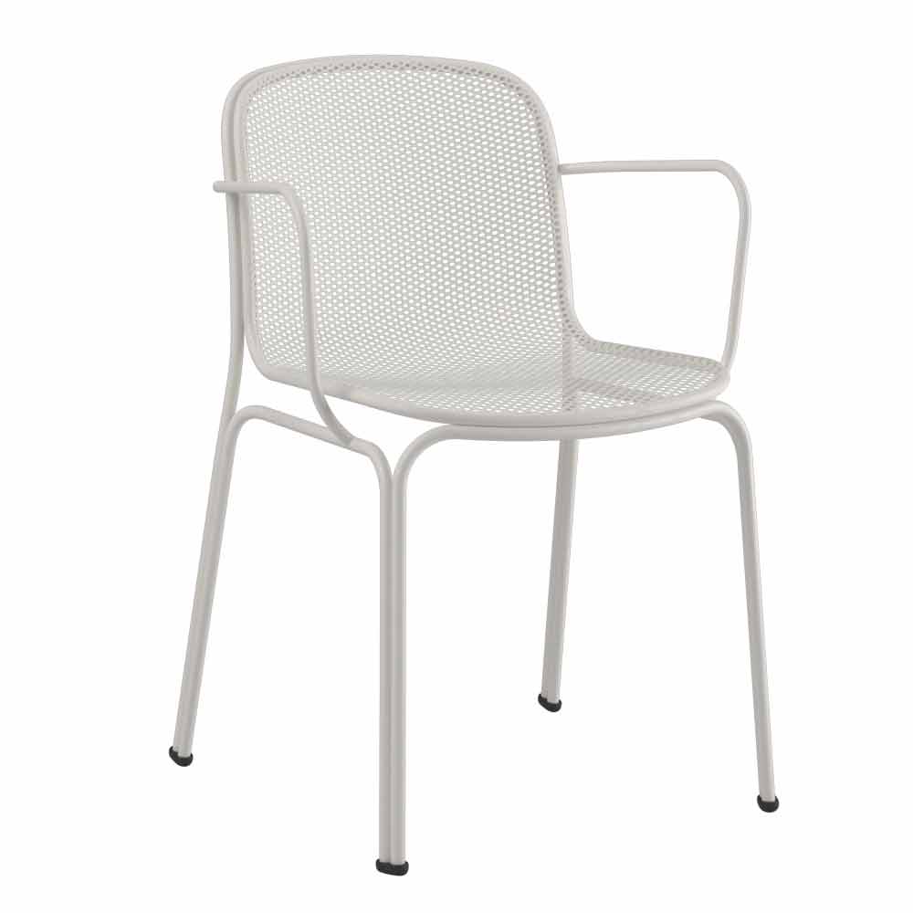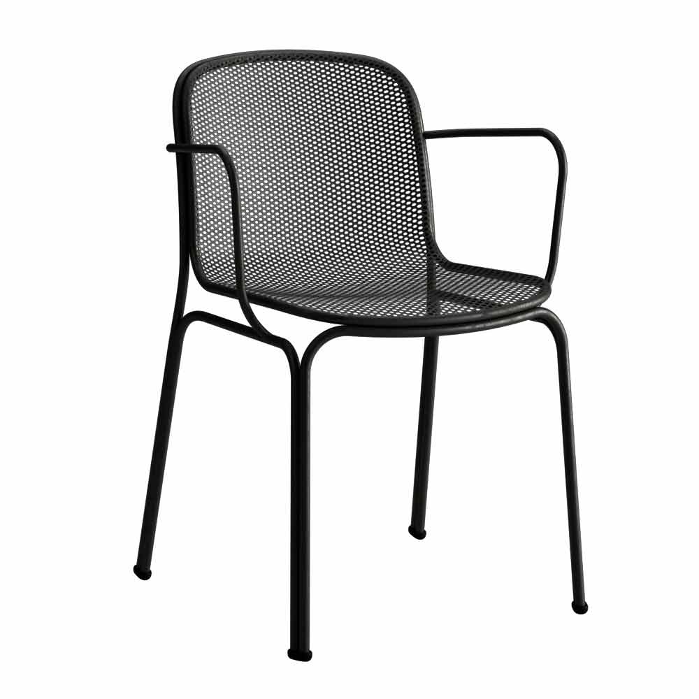 Stapelbarer Außenstuhl aus lackiertem Metall mit Armlehnen, hergestellt in Italien, 4 Stück.