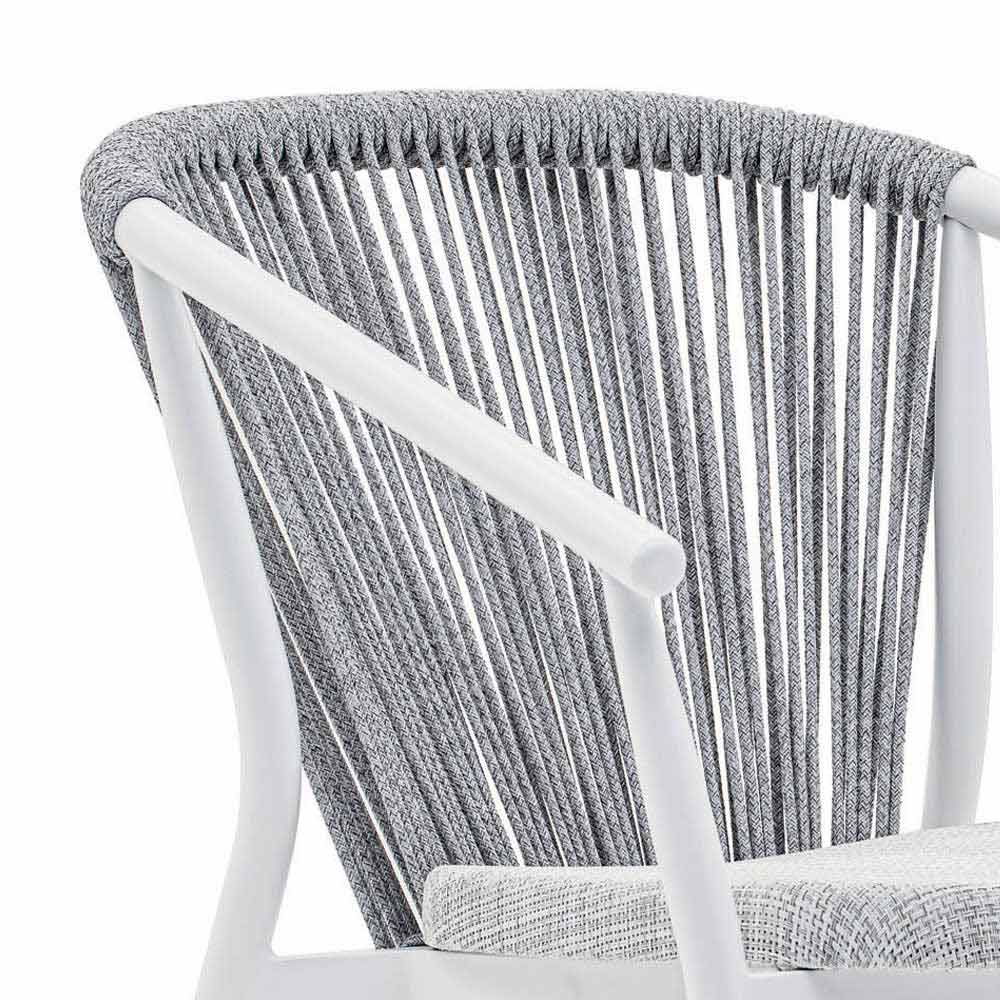 Smart wurde mit einer lackierten Aluminiumstruktur , einem Sitz aus technischem VAR # TEX-Stoff und einer Rückenlehne aus synthetischem VAR # TEX-Kabel (technischer Stoff aus PVC) hergestellt.