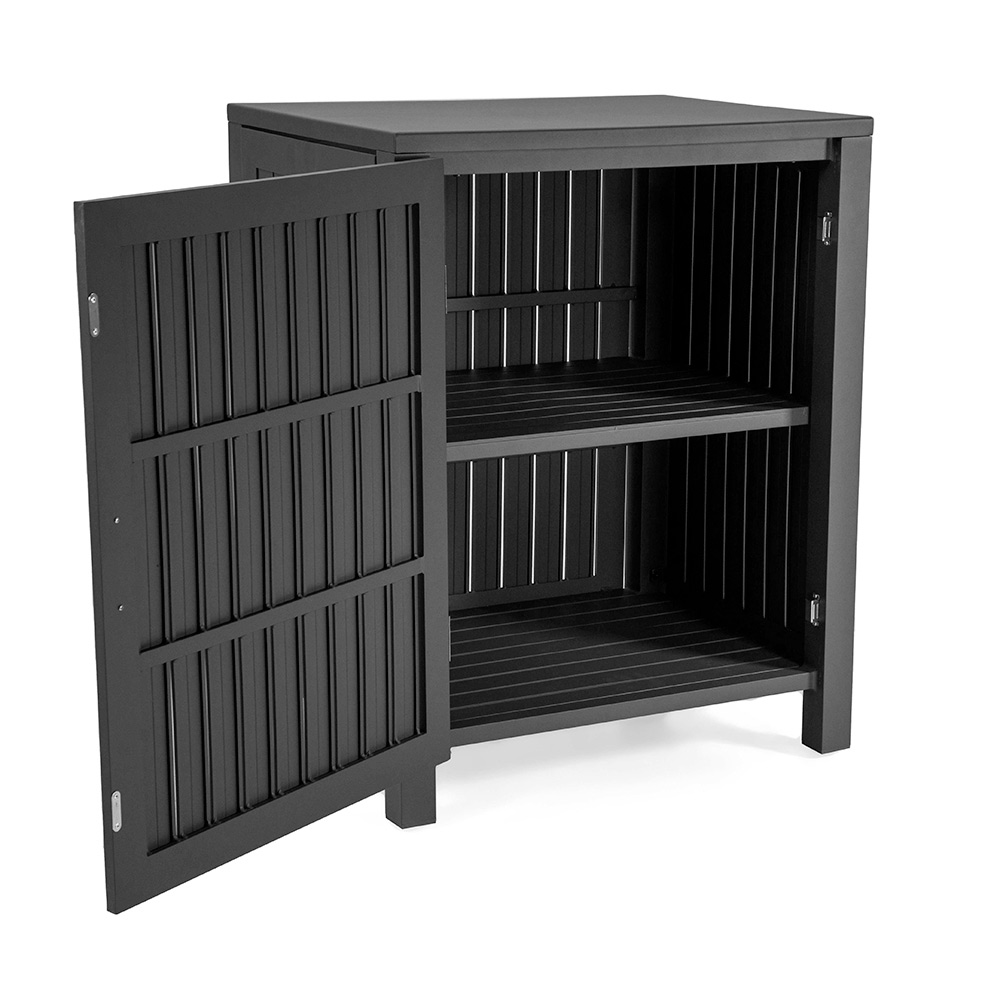 Entdecke die Funktionalität und Eleganz unseres Aluminium Sideboards , pulverbeschichtet in einer raffinierten Anthrazit Farbe . Dieses Stück ist ideal, um jedem Außen- oder Innenbereich einen Hauch von zeitgenössischem Stil zu verleihen. Seine wetterfeste Konstruktion macht es perfekt für den Einsatz im Garten, auf der Terrasse oder auch als stilvolle Aufbewahrungslösung im Innenbereich.
