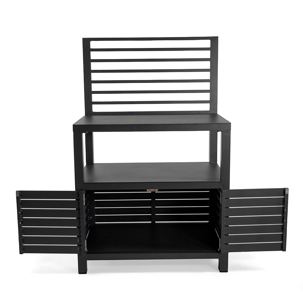 Sein stabiler Aluminiumrahmen sorgt für Witterungsbeständigkeit und Langlebigkeit, während das Lattenrost-Design einen Hauch von Raffinesse verleiht. Dieses Sideboard ist nicht nur eine praktische Ergänzung, sondern auch ein dekoratives Stück, das die Eleganz Ihres Outdoor-Wohnraums aufwertet.