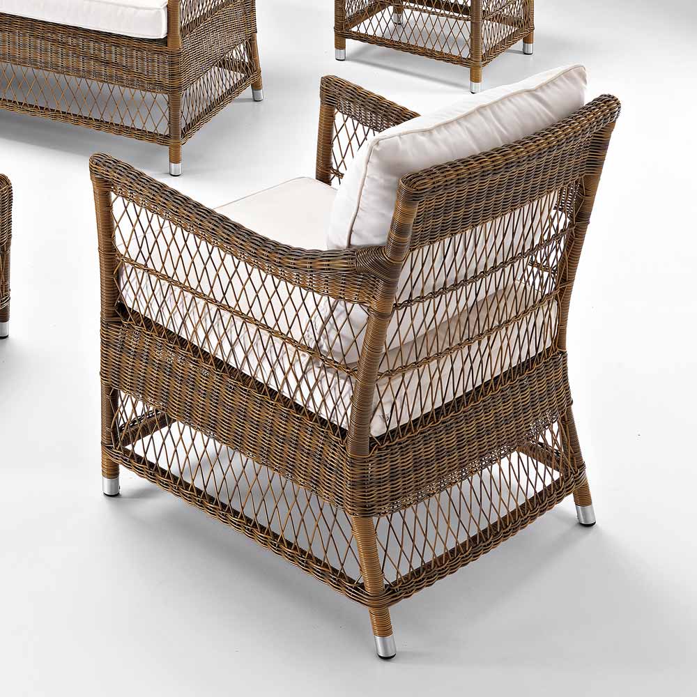 Der Geflechtstil ist raffiniert und zart und zusammen mit der sehr hohen Qualität der Materialien und seinen entschiedenen Formen machen diesen Sessel perfekt für die Einrichtung von Interieurs und Exterieurs sowohl im privaten als auch im Objektbereich wie Terrassen, Veranden, Gärten, aber sie finden auch einen perfekten Platz am Pool.