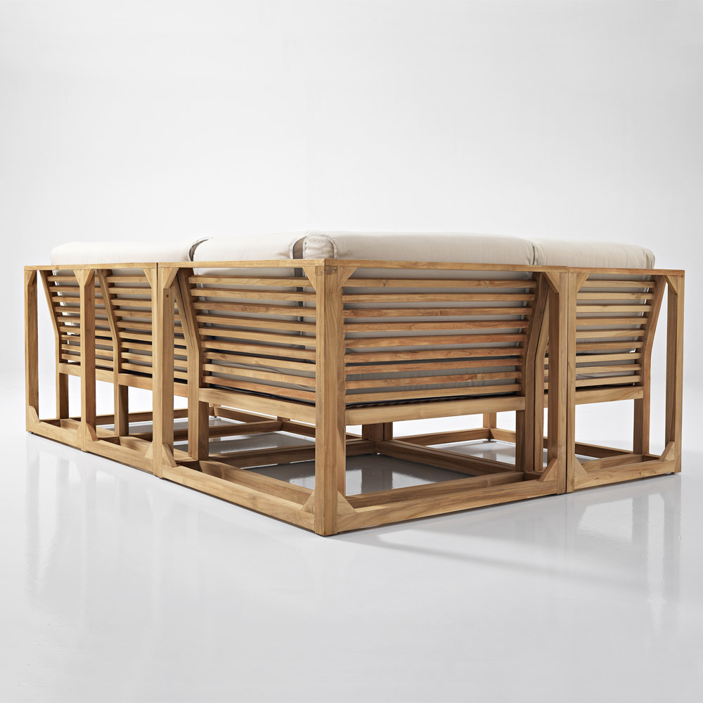 Ausgewähltes indonesisches Teakholz aus kontrollierten und nachhaltigen Wäldern (INDONESIANLEGALWOOD). Teakholz gilt als das wertvollste Holz, das für Außenmöbel zur Verfügung steht. Es ist extrem langlebig, stabil, witterungsbeständig, pilz-, parasiten- und insektenresistent. Es enthält einen hohen Anteil an natürlichen Ölen, die es widerstandsfähig machen und die Aufnahme von Feuchtigkeit begrenzen. Im Laufe der Zeit neigen Teakholzmöbel, die der Sonne, dem Regen, der Feuchtigkeit usw. ausgesetzt sind, im Allgemeinen dazu, eine silbergraue Farbe anzunehmen: Dies ist auf einen Oxidationsprozess der Oberfläche zurückzuführen, der das Holz auf natürliche Weise schützt. Dieser Prozess ist rein ästhetisch und beeinträchtigt weder die Struktur noch die Qualität des Holzes. Das Auftreten von Öl auf der Oberfläche von Teakholzmöbeln ist ein natürlicher Prozess: Das Öl kann in den ersten Monaten austreten, je nach der Umgebung, in der die Möbel stehen, mehr oder weniger stark. Die natürlichen Öle, die in Teakholz vorhanden sind, machen es zum besten Holz für Außenmöbel.
