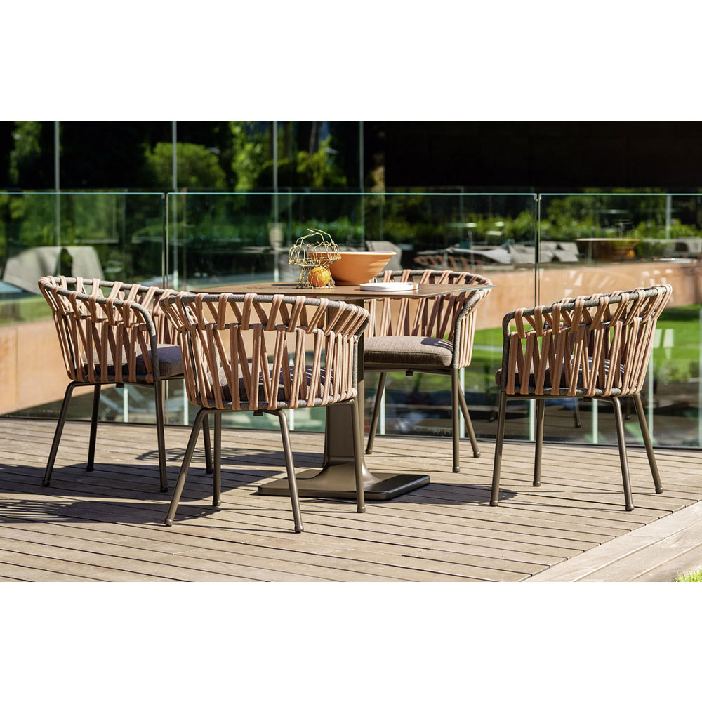 Outdoor-Sessel mit geflochtener Rückenlehne und Aluminiumfuß, Luxusartikel.