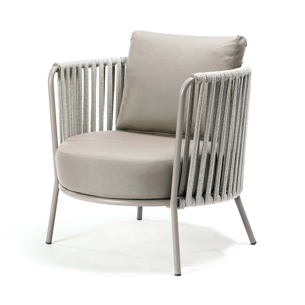 Outdoor-Sessel aus Stahl und Seil in verschiedenen Größen mit Kissen, Made in Italy.