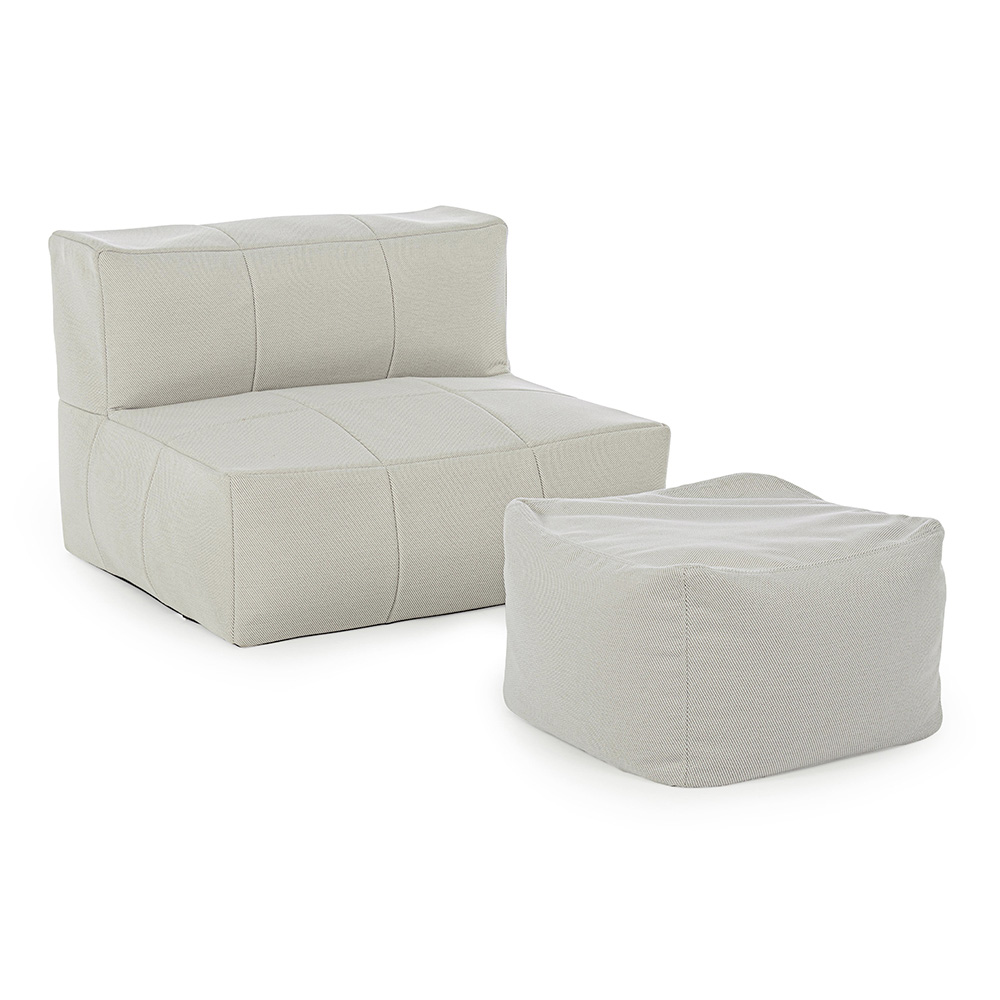 Aluminiumrahmen. Abnehmbarer Bezug aus Olefingewebe (100% Polypropylen), wasserabweisend und UV-beständig (Klasse 7). Polsterung aus expandiertem Polystyrol (EPS) mit dem Zusatz von schnell trocknendem Schaum im Sitz.