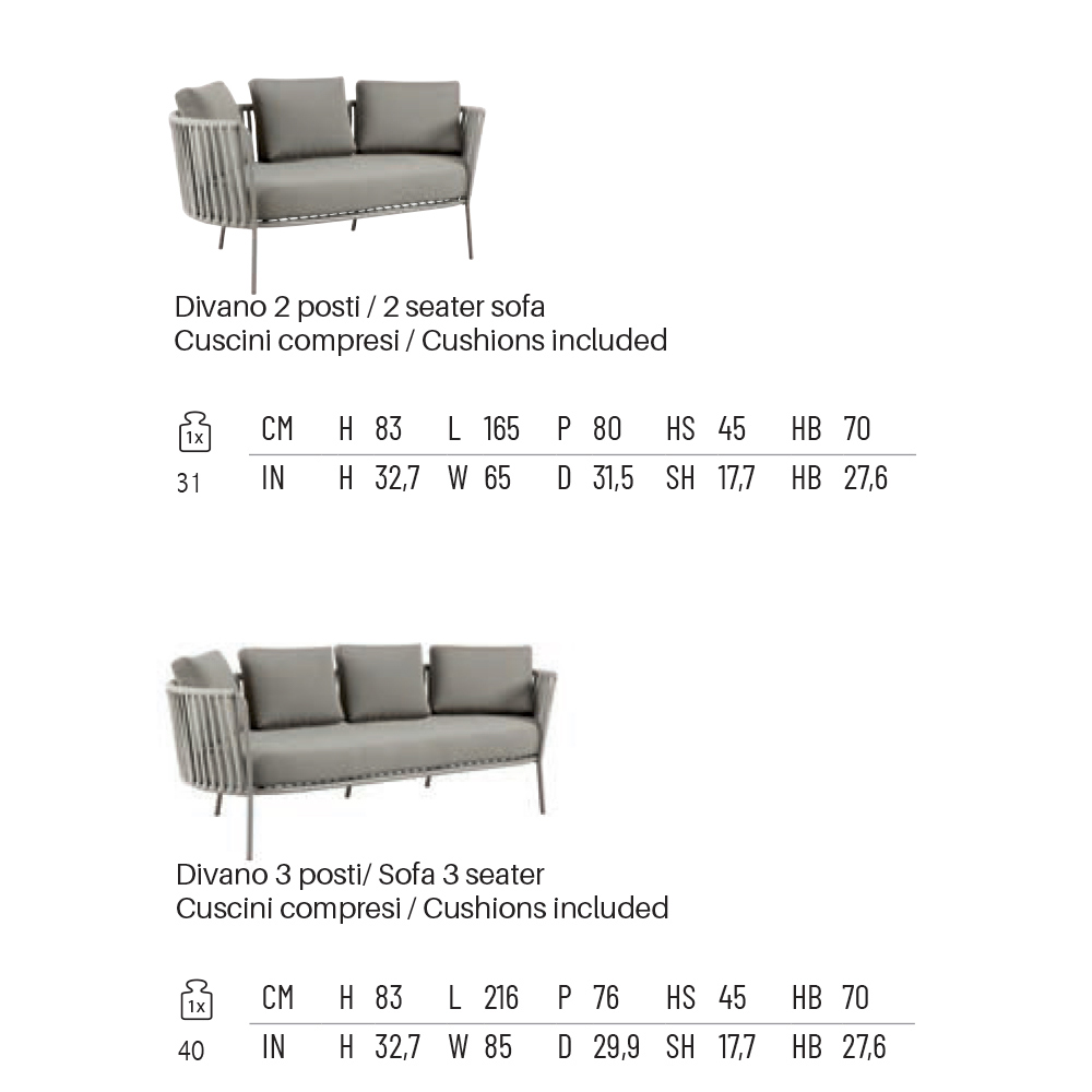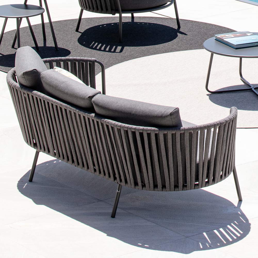 Widerstandsfähigkeit der Materialoberfläche gegen korrosive Witterungseinflüsse, während das Seil chlor- und sonnenbeständig sowie schimmelresistent ist. Die Kissen bestehen aus UV- und wasserbeständigem Material, das die Farbe lange erhält und das Sofa zum perfekten Einrichtungselement für jeden Außenbereich macht.