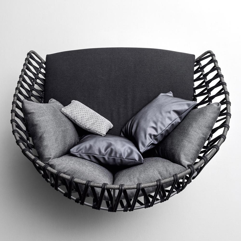 - schwarzer Fuß, grauer VAR # ROPE-Korb, anthrazitfarbenes Band und anthrazitfarbenes Sitzkissen.