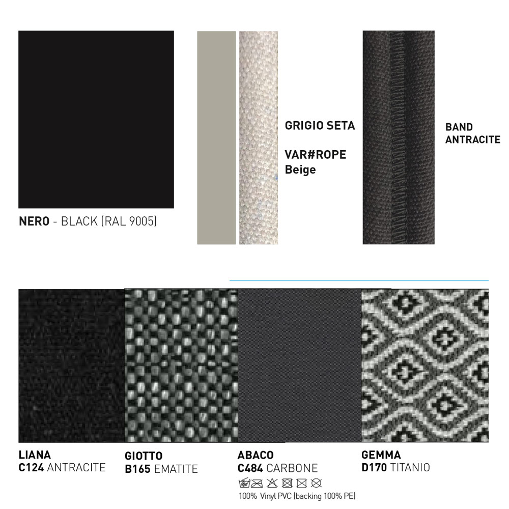 Die Struktur und die Füße bestehen aus mit Epoxidpulver beschichtetem Aluminium, ein Verfahren, das dieses Sofa