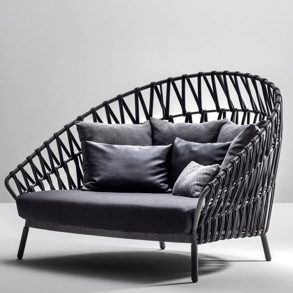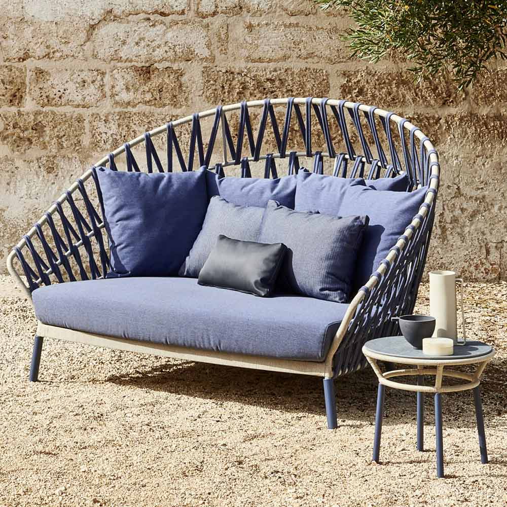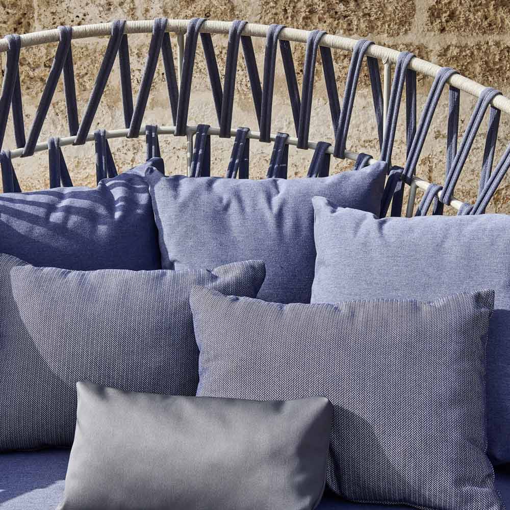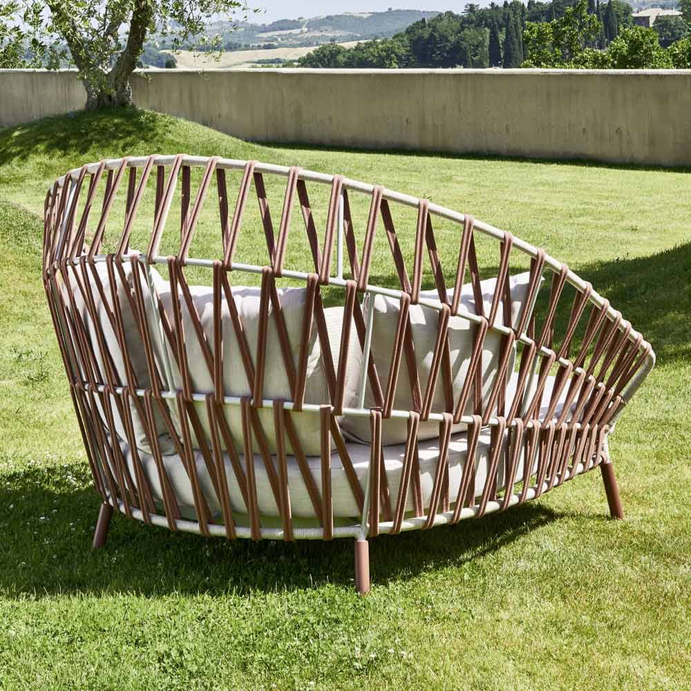 Gartensofa mit Struktur aus lackiertem Aluminium und gewebter Rückenlehne Made in Italy.