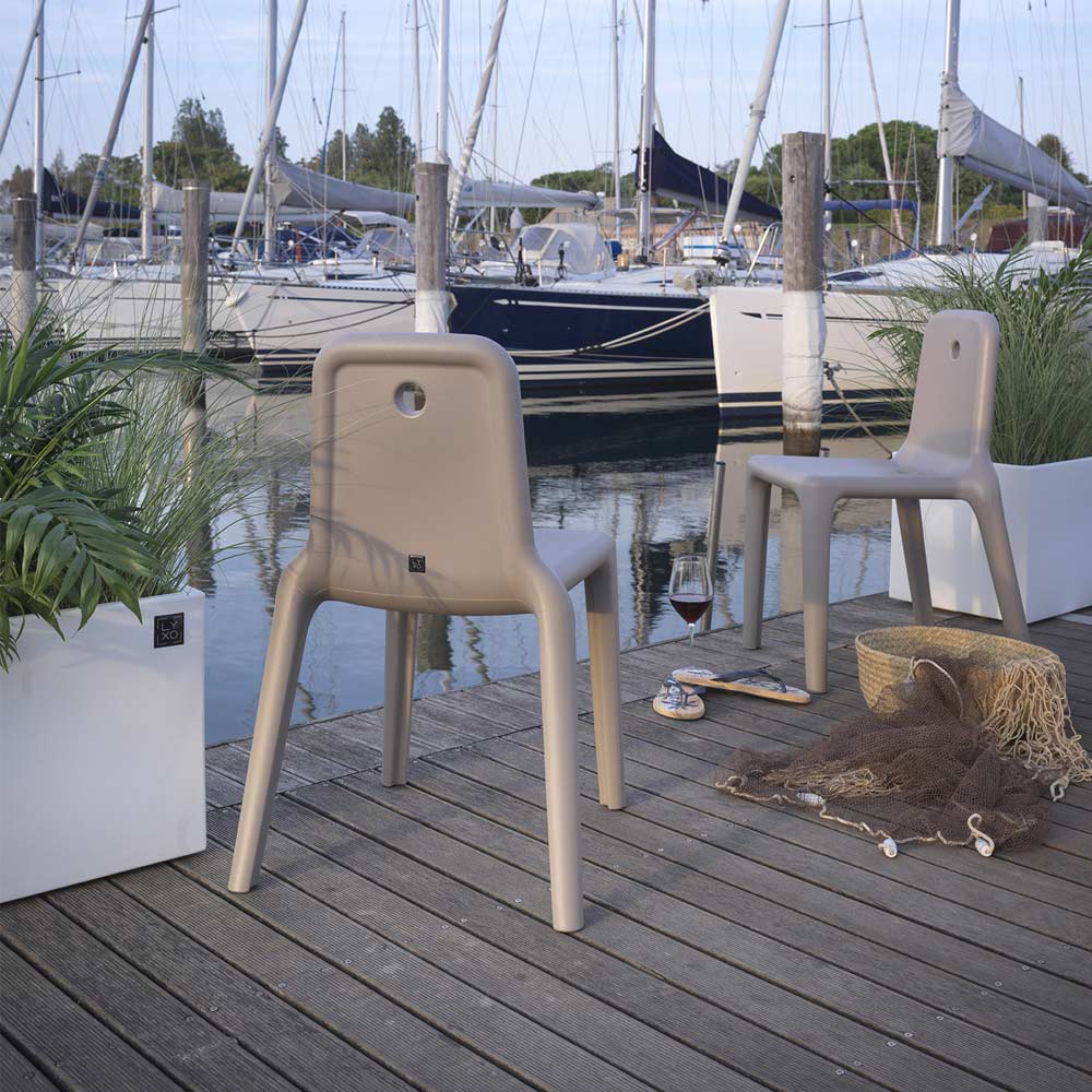Dank der Verwendung von Polyethylen und seiner geringen Größe ist dieser Stuhl äußerst vielseitig einsetzbar , was durch seine fließenden und unterscheidbaren Merkmale unterstrichen wird. Er bietet die Möglichkeit, jede Art von Umgebung zu bereichern, sowohl im Innen- als auch im Außenbereich, und eignet sich perfekt für die Einrichtung von Entspannungs- und Ruhebereichen.