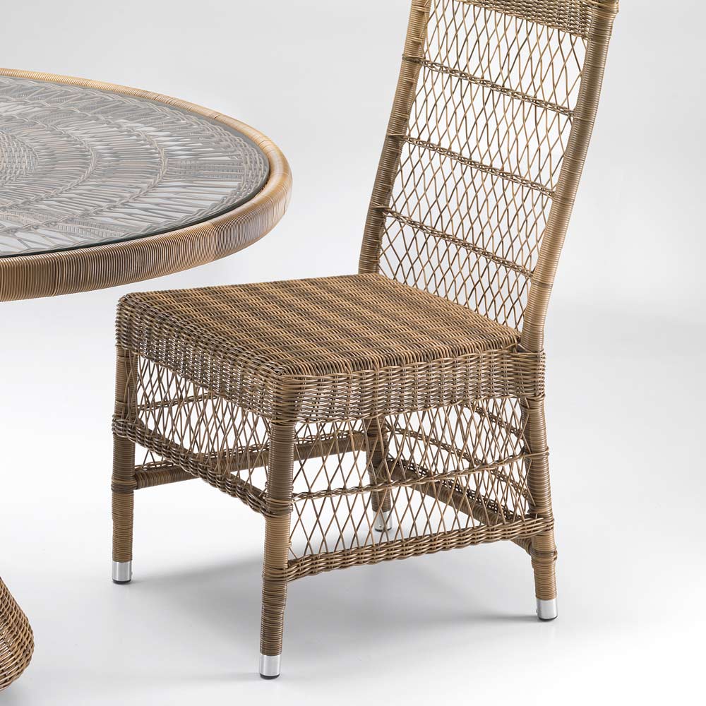 Der Geflechtstil ist raffiniert und zart und zusammen mit der sehr hohen Qualität der Materialien und seinen entschiedenen Formen machen diesen Stuhl perfekt für Innen- und Außeneinrichtungen, sowohl für private als auch für gewerbliche Umgebungen wie Terrassen, Veranden, Gärten, aber sie finden auch einen perfekten Platz am Pool.