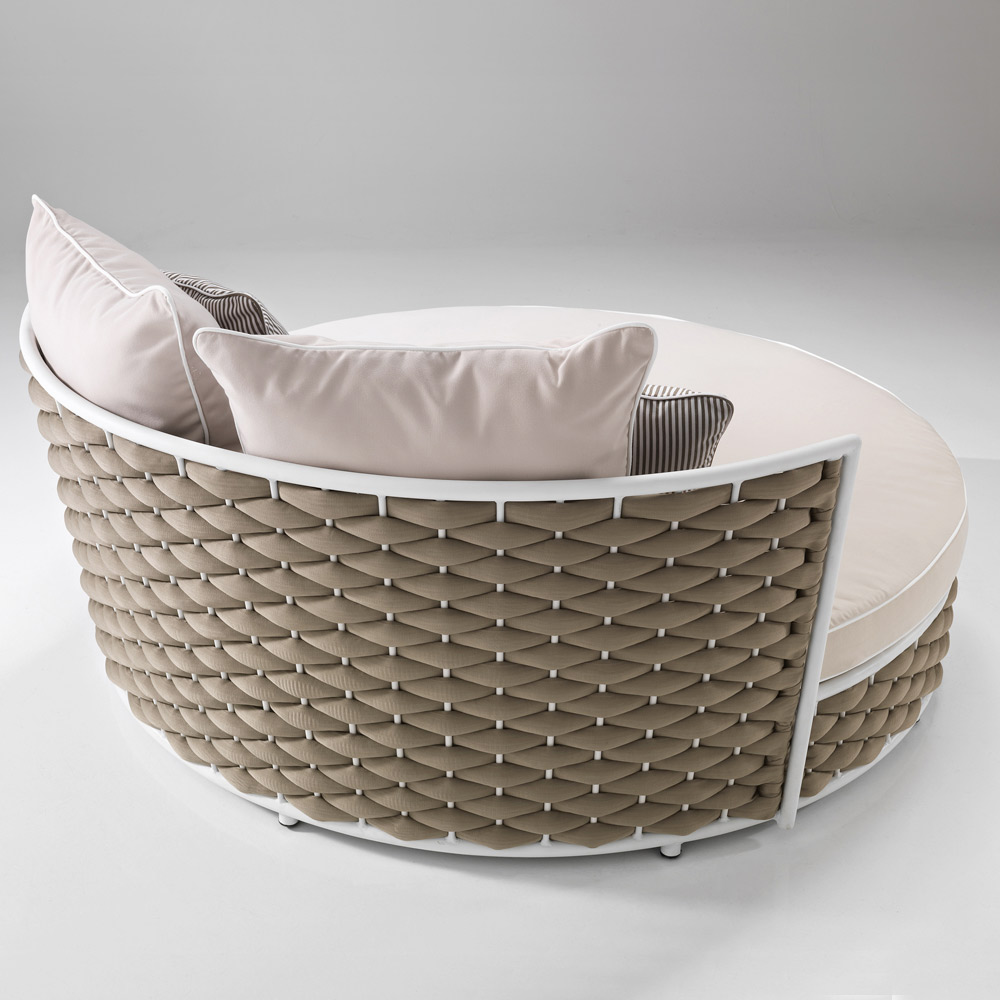 Die Struktur dieser Liege ist einfach zu handhaben und stabil, behält aber gleichzeitig ein sauberes Design bei. Sein moderner Stil verleiht ihm einen starken Charakter und macht es perfekt für die Einrichtung von Außenbereichen sowohl im privaten als auch im gewerblichen Bereich.