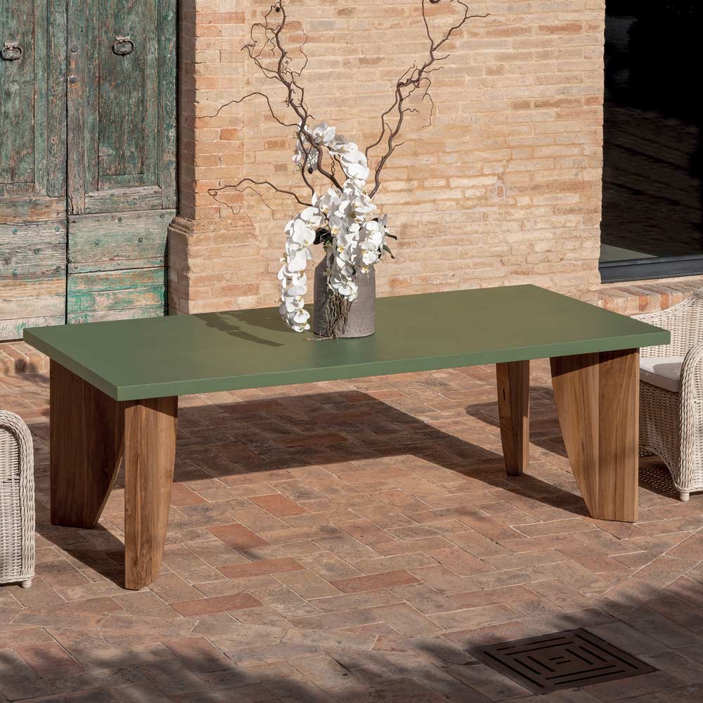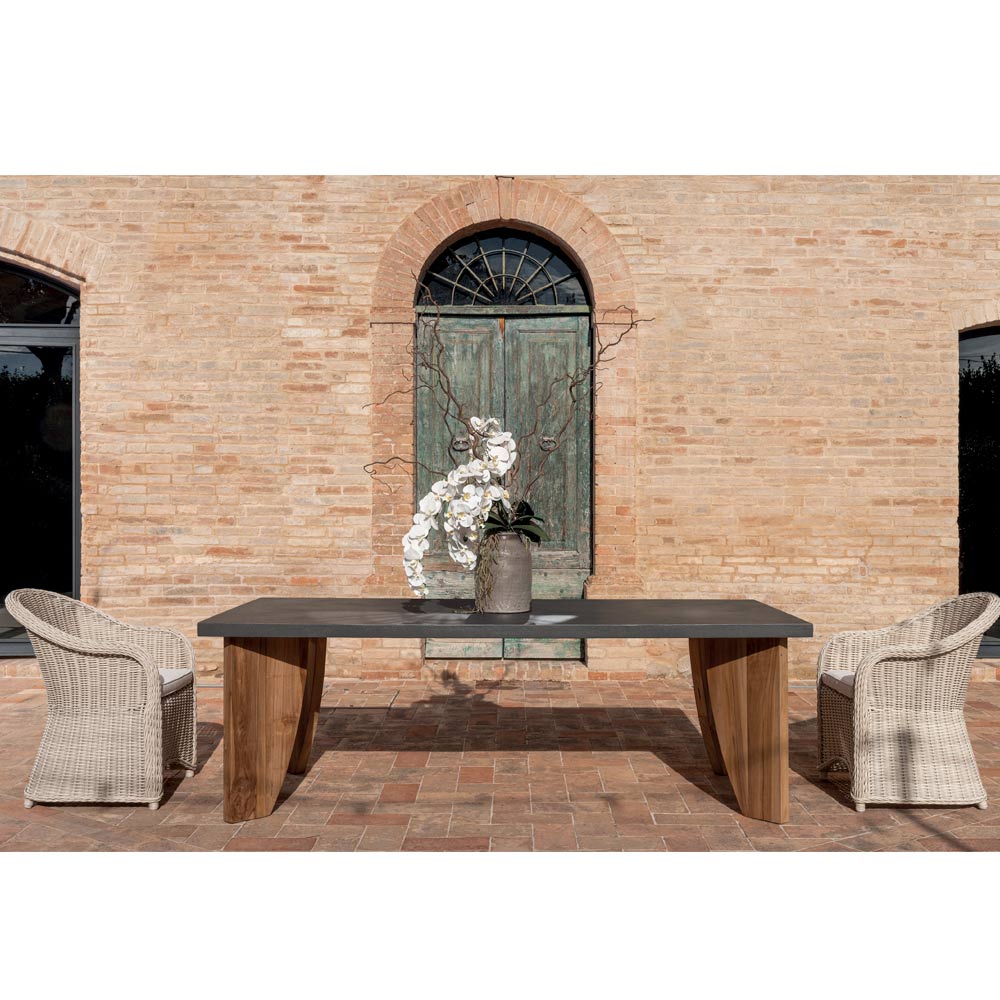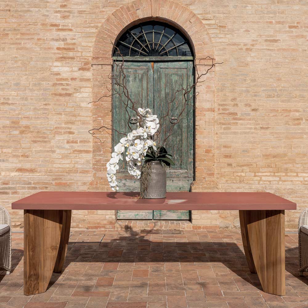 Outdoor-Tisch aus Okumè-Mikrozement und Teakholz-Finish, hergestellt in Italien – Bleistift