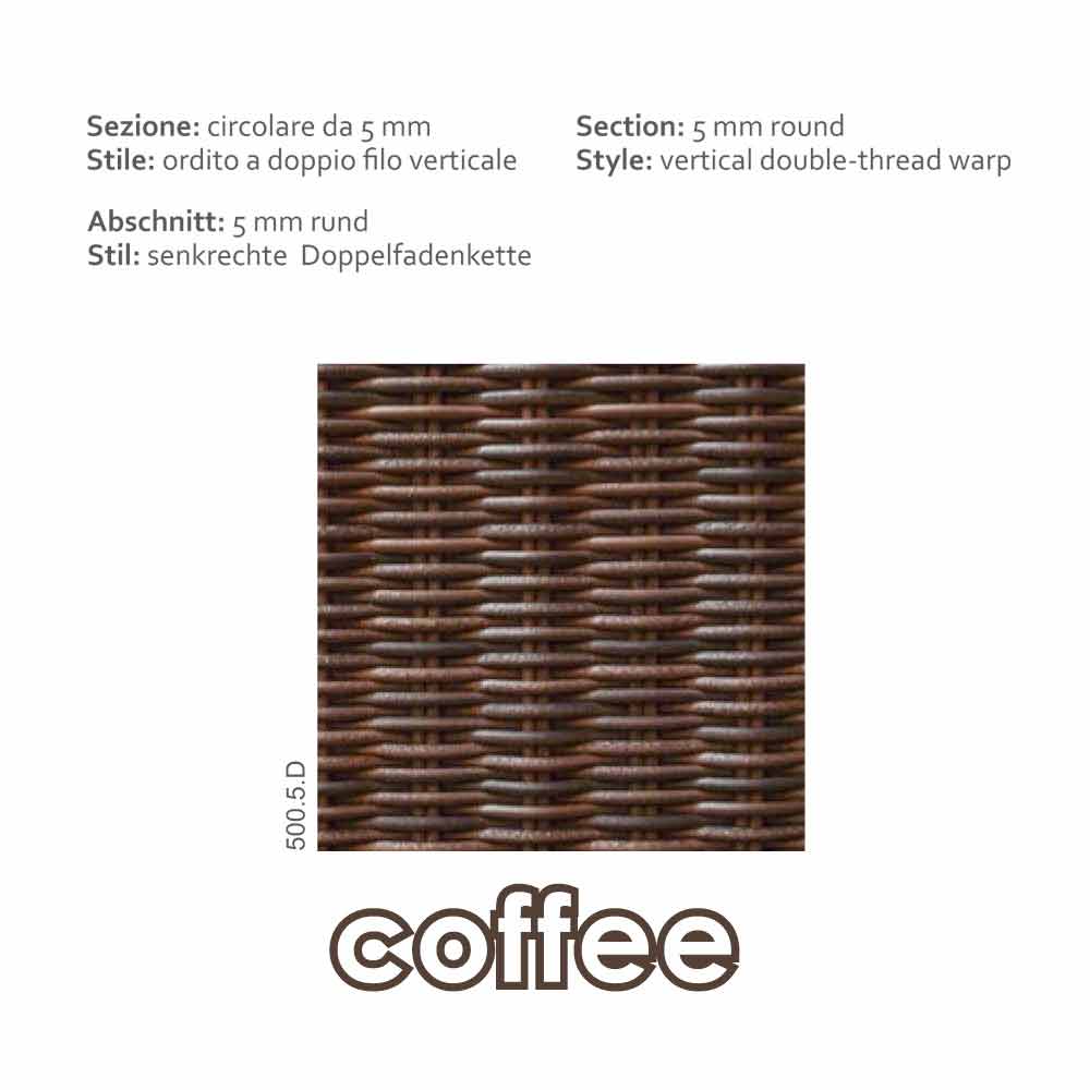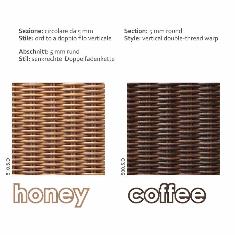 Die Polyrattan Struktur ist in  Farbtönen erhältlich: Kaffeebraun und honigfarben.