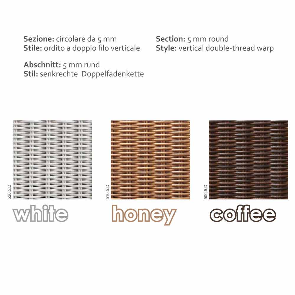 MIt seinem stabilen Alurahmen und der feinen Oberflächenverdelung des Polyrattan Geflechtes aus 5 mm Durchmesser liefert einen zeitgemäßen Touch. Die Polyrattan Struktur ist in 3 Farbtönen erhältlich: Kaffeebraun, weiß und honigfarben.