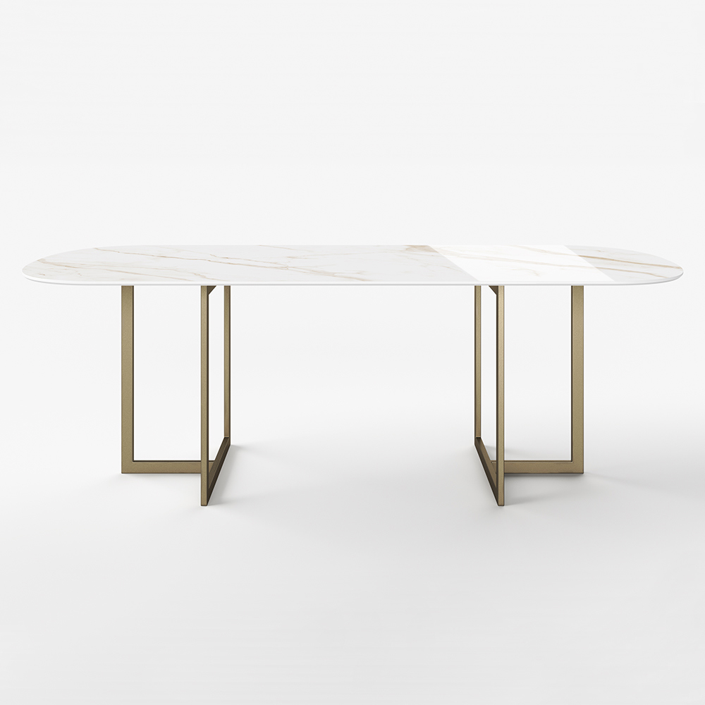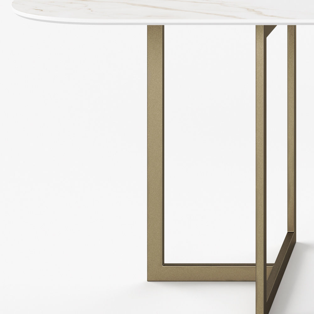 Esstisch aus Feinsteinzeug mit Marmor- und Metalleffekt Made in Italy.