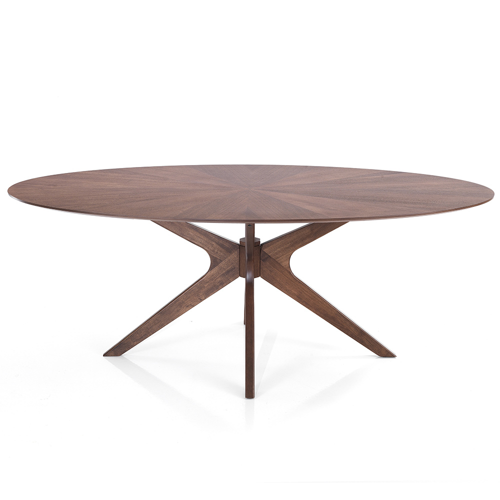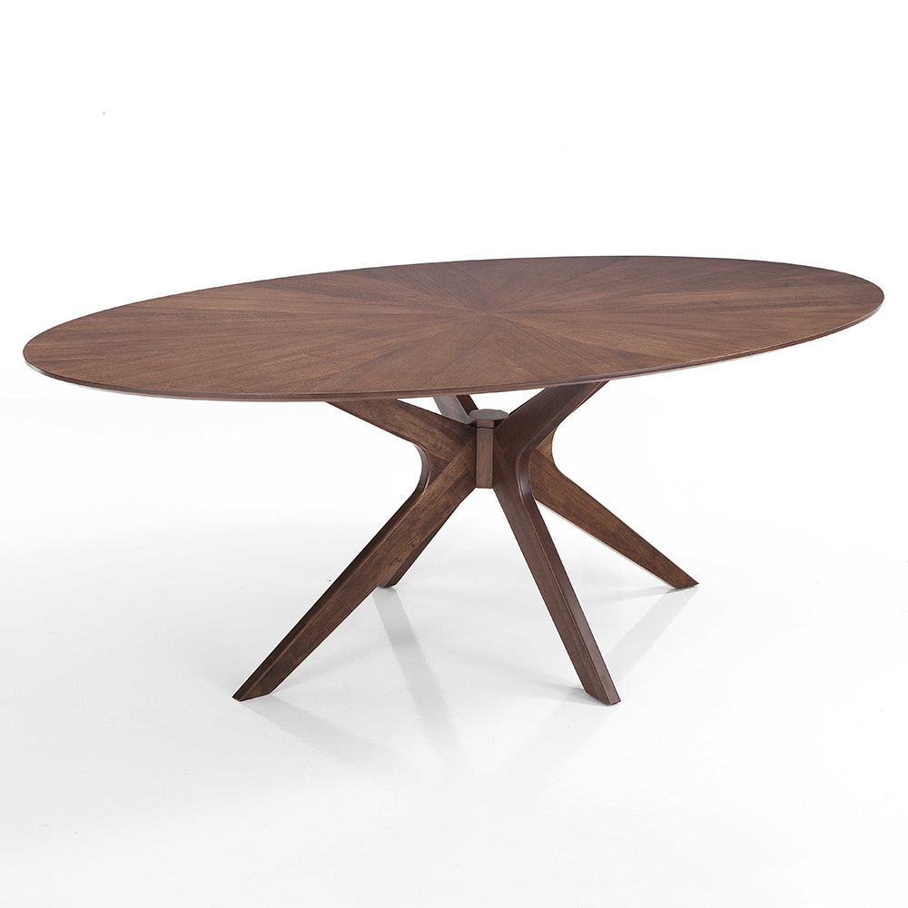 Esstisch mit ovaler Platte aus furniertem MDF (Stärke 18 mm) und gleichfarbigem Massivholzuntergestell. Ein Produkt mit einem beeindruckenden und eleganten Stil für diejenigen, die es lieben, ihre Wohnräume mit einem raffinierten und Design-Touch auszustatten. Die Stärke dieses Tisches liegt zweifellos in der besonderen Formgebung des Sockels, die nicht nur die einfache und minimale Ästhetik bereichert, sondern auch dazu beiträgt, dem Produkt Stabilität zu verleihen, um ein hochwertiges Ergebnis zu erzielen, das in Esszimmern oder im Mittelpunkt der Aufmerksamkeit steht moderne Küchen.