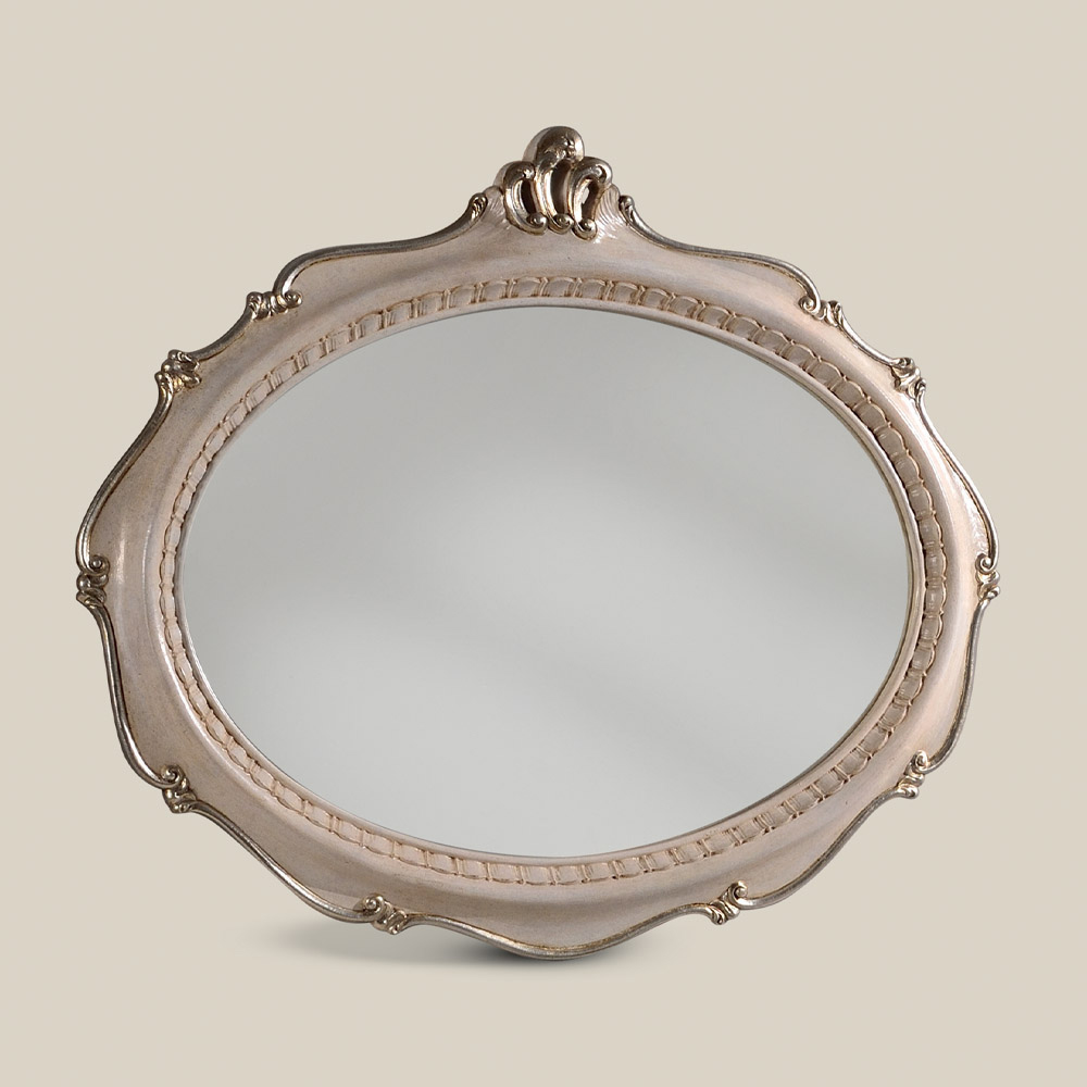Ovaler Spiegel mit Rahmen aus Mekka-Holz in Antik-Silber und patiniertem Sockel im klassischen und eleganten Stil, perfekt, um Ihrem Wohnbereich einen Hauch raffinierter Persönlichkeit zu verleihen. Ein einzigartiges und raffiniertes Accessoire, das vollständig in Italien von fähigen Handwerksmeistern hergestellt wird, Meistern der Kunst , die jedes Accessoire mit Weisheit und Sinn für Eleganz fertigstellen. Die Herstellung erfolgt unter Verwendung wertvoller Materialien und die Handarbeiterfolgt mit der größten Sorgfalt und Professionalität, die Produkte Made in Italy auszeichnet.