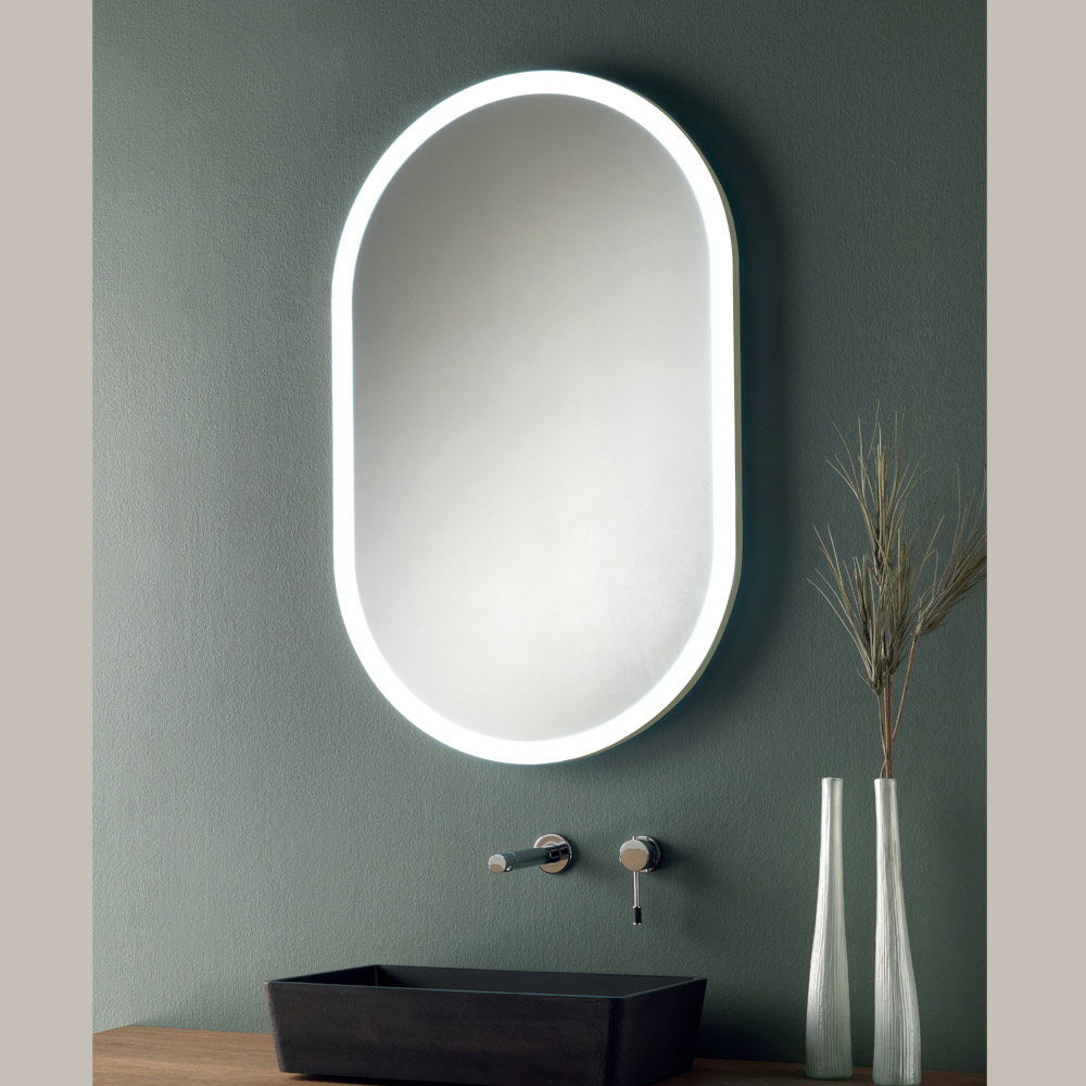 Entdecken Sie die Essenz integrierter Beleuchtung und modernem Design mit diesem ovalen Metallspiegel mit LED-Beleuchtung . Dieser Spiegel vereint Eleganz und technologische Innovation und ist eine raffinierte Ergänzung für jede Umgebung. Er bietet nicht nur Funktionalität, sondern auch einen auffälligen Stil.