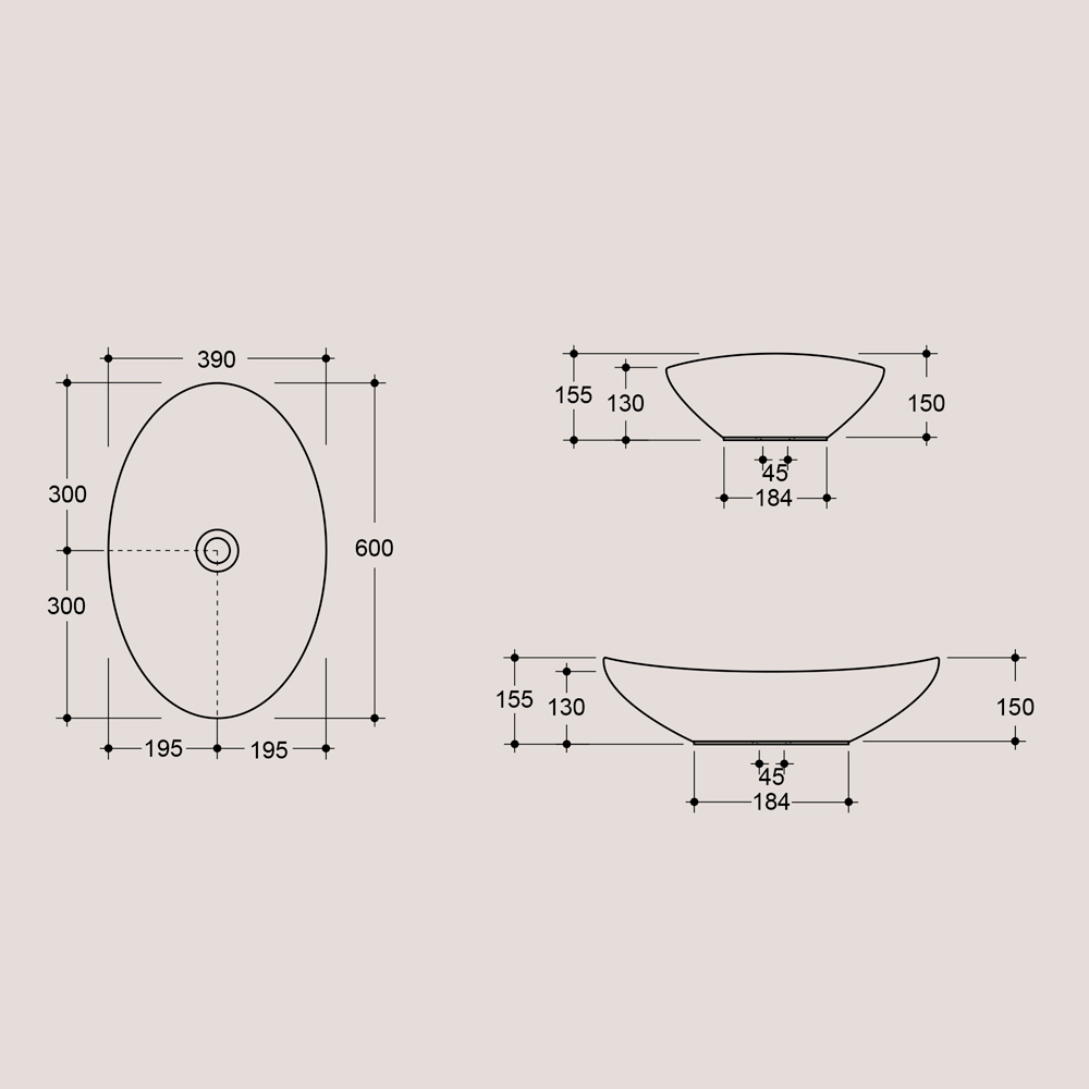 Ovales Aufsatzwaschbecken aus Keramik L 60 cm Made in Italy - Jumper