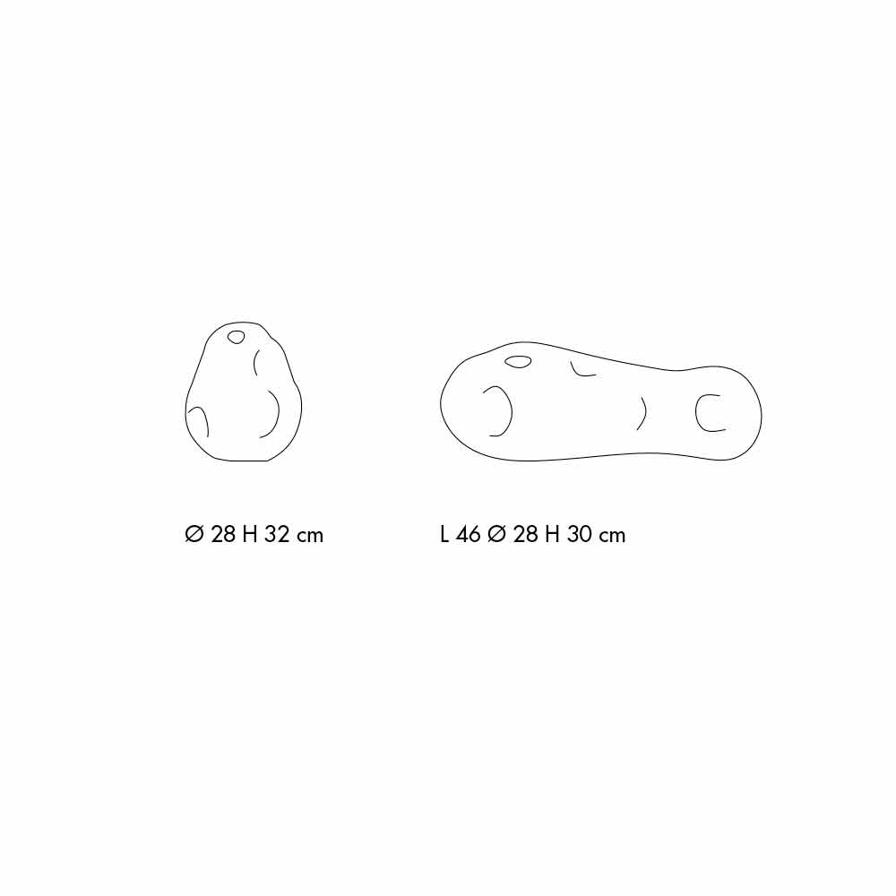 L 46 x T 28 x H 30 cm (ovaler Bohnentopf).