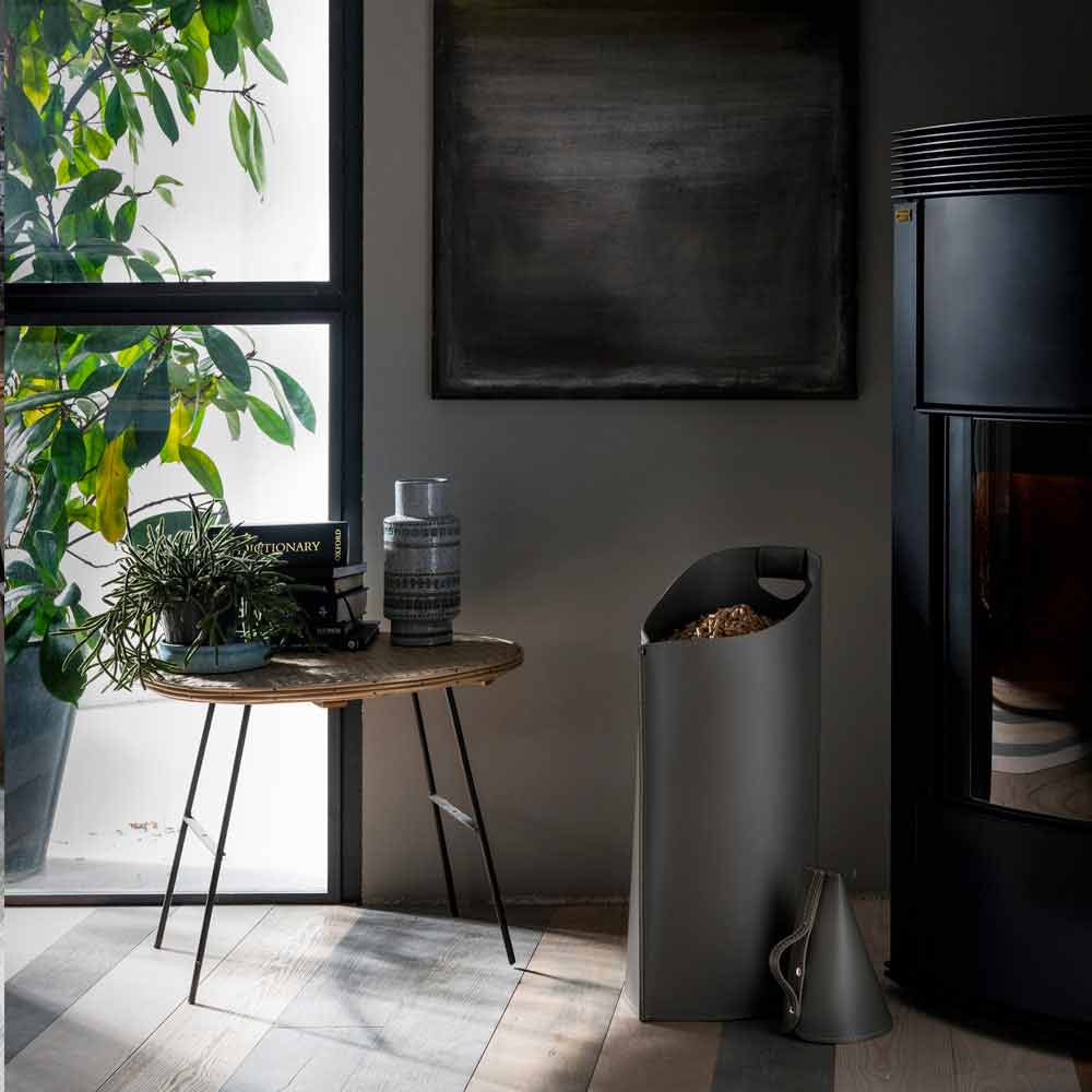 Praktisch und stilvoll, mit einem Leder Schaufel, die die tägliche Fütterung Pellets in den Ofen erleichtert. total bailer Vollleder mit einem ergonomischen Griff, in es erfüllt die Design-Funktionalität.