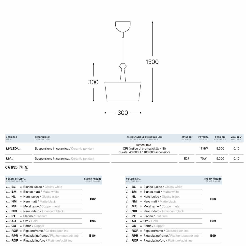 < Moderne Keramik Pendelleuchte ILustri 6 von Aldo Bernardi . I Lustri 6 ist in verschiedenen Ausführungen und mit Standard E27-Glühbirnenfassung oder LED-Licht erhältlich.