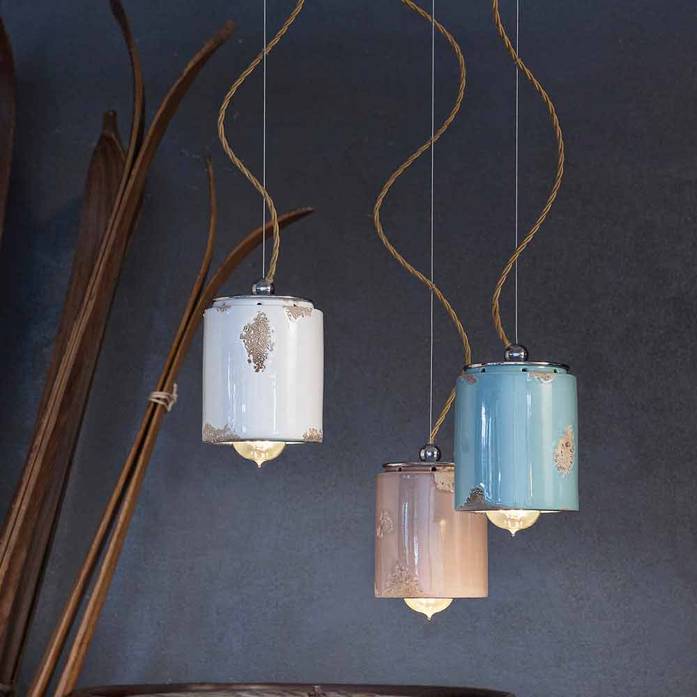 Ferroluce handgefertigte Vintage-Hängelampe Dank der Verwendung von Glasuren, die der Oberfläche einen haptischen und visuellen lebendigen Aspekt verleihen, und der Retro-Farben können selbst die Wandleuchten mit den innovativsten Lösungen einen nostalgischen Geschmack vermitteln. Ideal für Umgebungen mit urbanem Stil und Vintage-Flair. Wesentliches, rohes Design, entworfen, um ein volles und beruhigendes Licht zu verbreiten. Diskrete und elegante Deckenleuchte, die die Wesentlichkeit des Gebrauchs bewahrt und mit einer feinen Ausgewogenheit der Formen beruhigt. Kleine Details für große Wirkung mit antikem Flair. Kalt und glatt wie Keramik. Traditionellere Umgebungen sind ideal für diesen vielseitigen Strahler mit leuchtenden Farben. Einbaustrahler gekennzeichnet durch glänzende und abgenutzte Farben. Die diskreten Formen des Körpers verstärken den Lichtpunkt mit einem traditionellen Design.