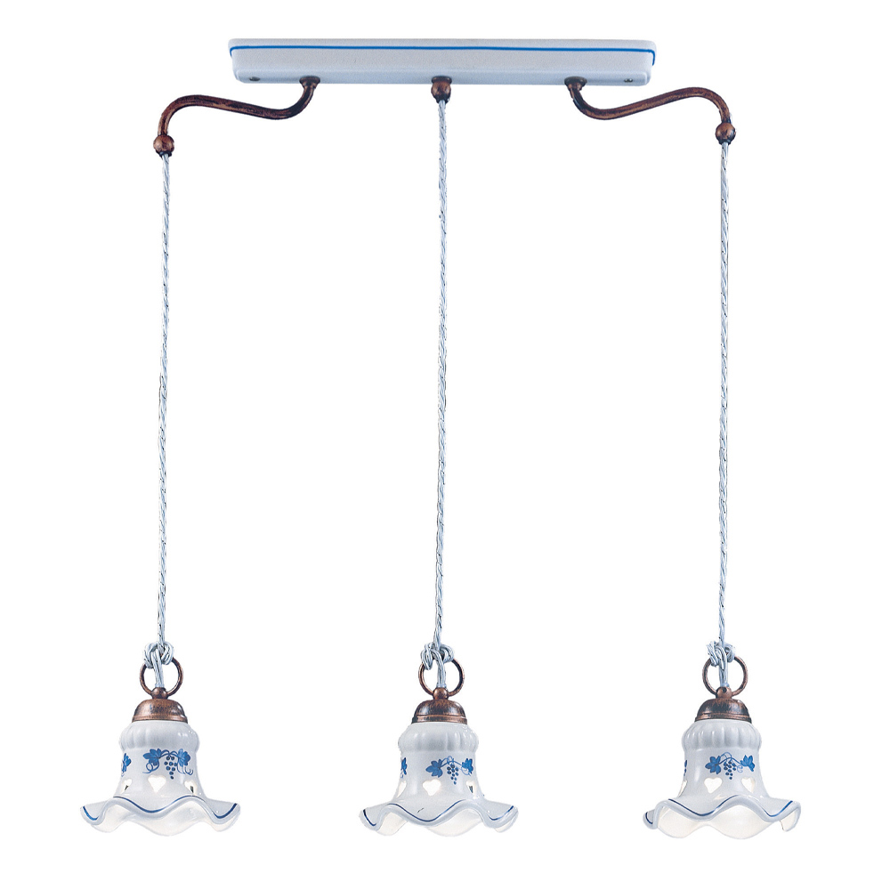 Pendelleuchte mit 3 Lichtern aus Eisen und handverzierter Keramik, hergestellt in Italien von Ferroluce.