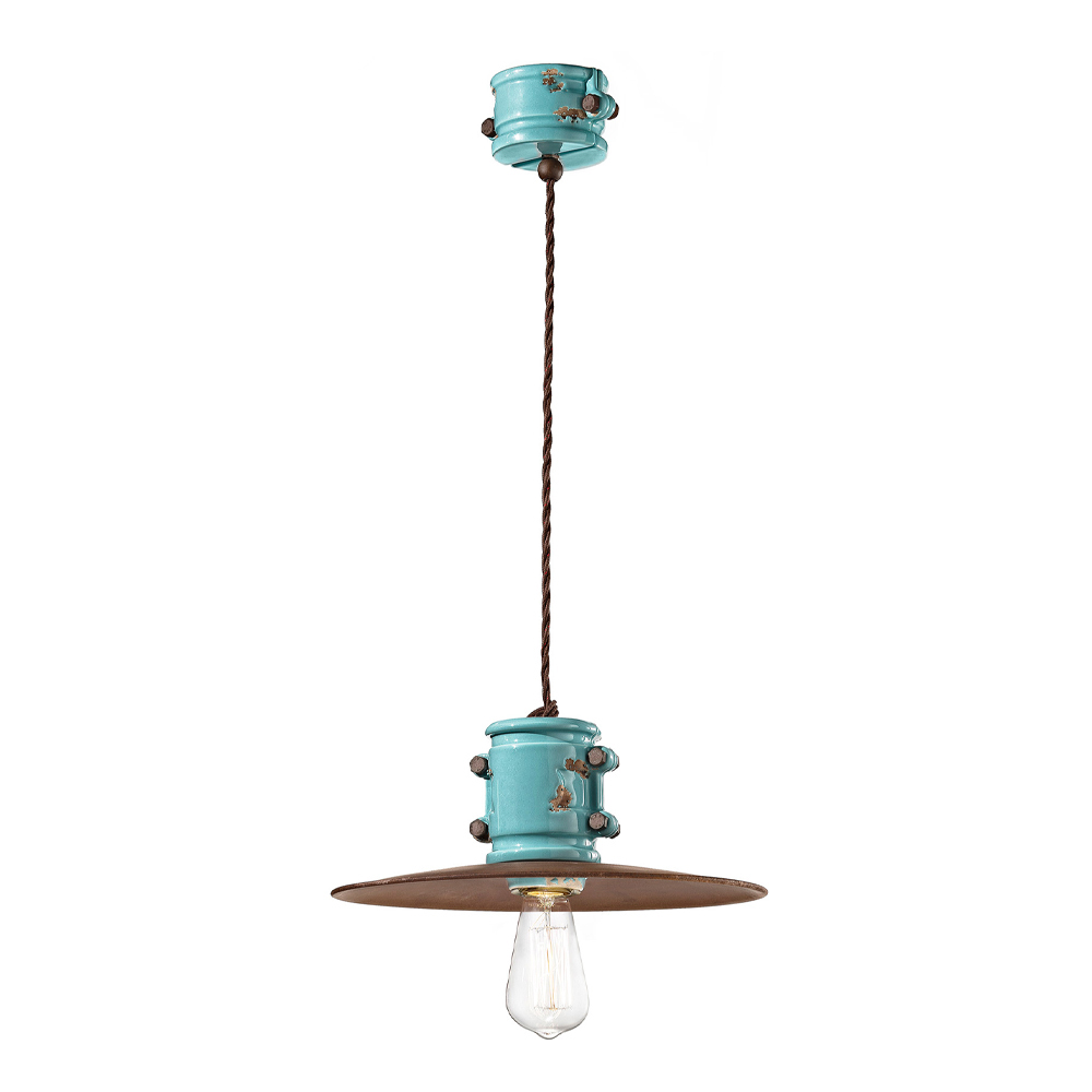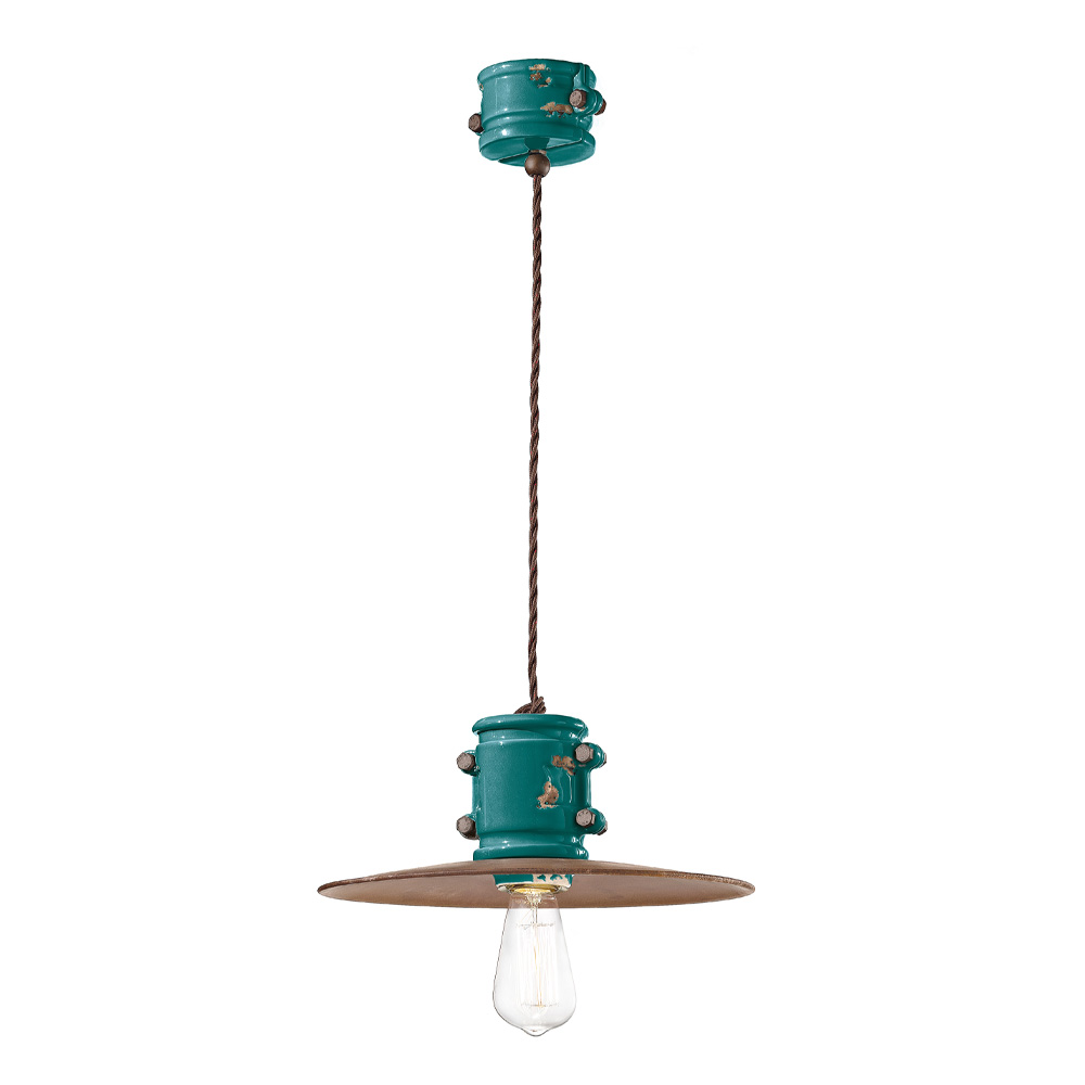 Handgefertigte Hängelampe aus Keramik und Metall im Industriedesign, hergestellt in Italien von Ferroluce.