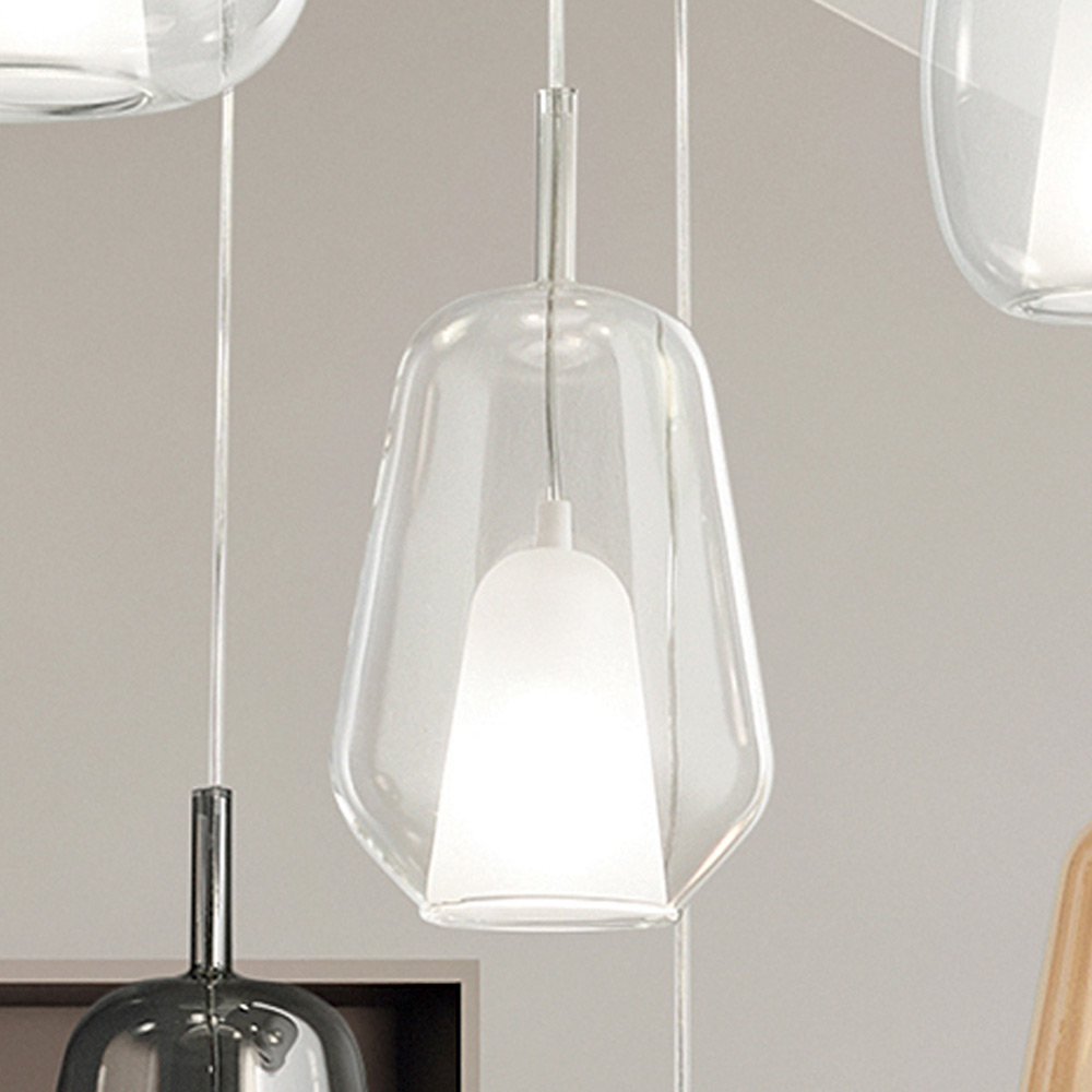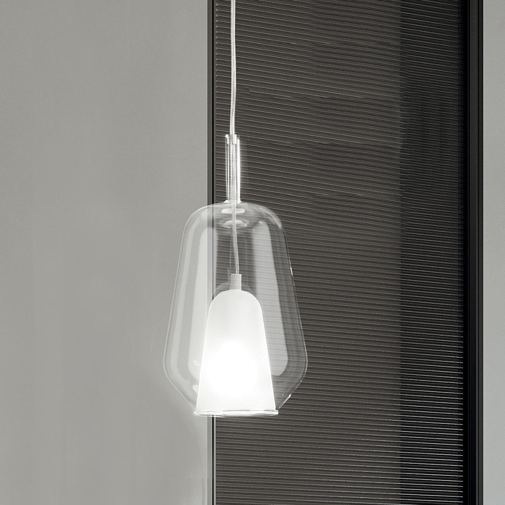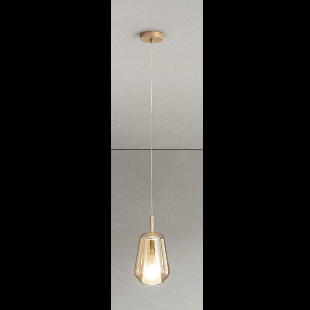 Entdecken Sie den Charme anspruchsvoller Beleuchtung mit dieser Pendelleuchte, die jedem Raum Eleganz und Wärme verleiht . Die an einem dünnen Draht aufgehängte Lampe kann in verschiedenen Ausführungen erhältlich sein und reflektiert ein einladendes und einladendes Licht, das die Umgebung mit einem Hauch raffinierter Modernität bereichert.