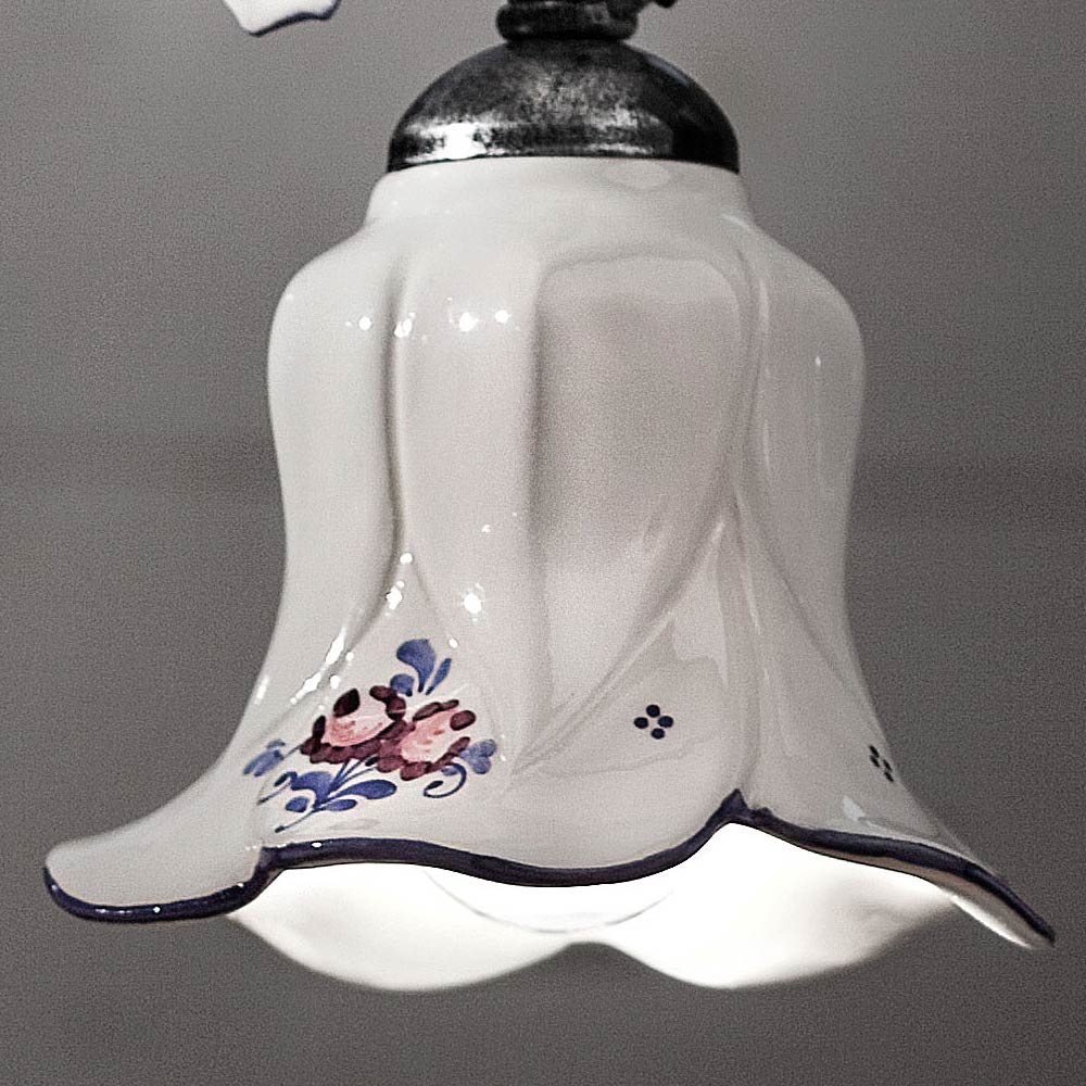 Hängelampe aus Metall und Keramik mit handbemalten Rosen, hergestellt in Italien von Ferroluce.