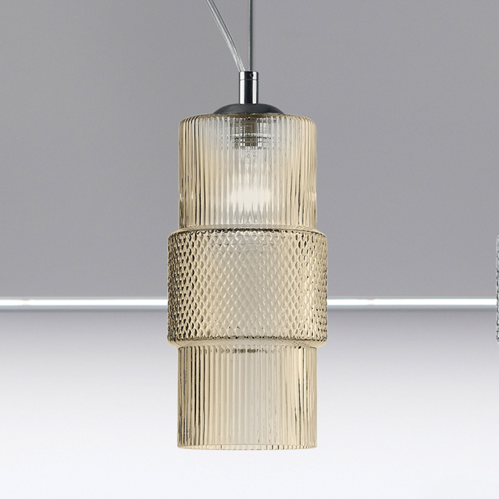 Ein Kunstwerk von ausgeprägter Eleganz aus geschichtetem oder transparentem Glas mit Streifenverarbeitung, das sich durch eine romantische Ästhetik auszeichnet und in der Lage ist, zusammen mit beispiellosen Lichtspielen faszinierende Lichter zu geben.