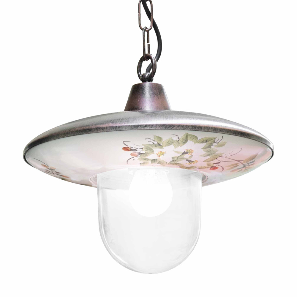 Hängeleuchte für den Außenbereich aus schwarzem Aluminium mit handbemalten Blumen, hergestellt in Italien von Ferroluce.
