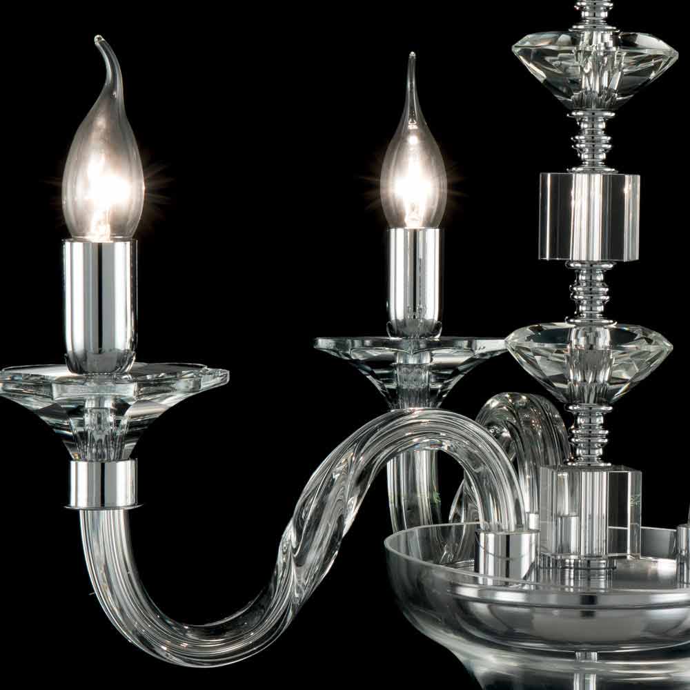 3-flammige Pendelleuchte aus Glas und Kristall Ivy, hergestellt in Italien Handgefertigter Kronleuchter aus transparentem Glas mit Kristallverzierungen. Verchromte Oberflächen. Leuchtmittel: 3 x E14 40W Leuchtmittel nicht im Lieferumfang enthalten.