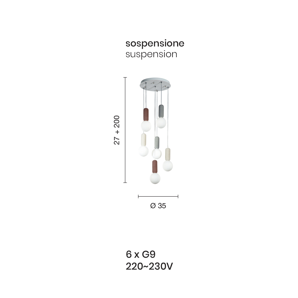 6 Leuchten - Durchmesser 35 x H 227 cm (6x G9 220-230V);