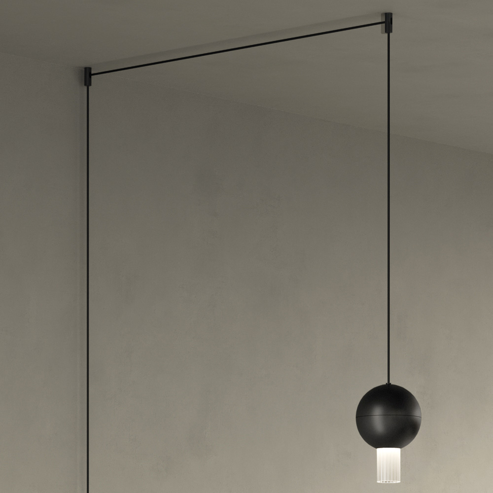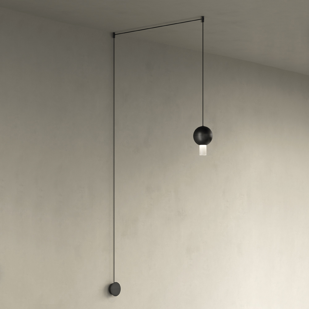 Diese Pendelleuchte verkörpert die Essenz des eleganten Minimalismus mit einer kompakten und harmonischen Form, die jeden Raum mit Diskretion und Stil aufwertet. Der kugelförmige Körper passt perfekt zum unteren Beleuchtungselement und erzeugt einen raffinierten Kontrast zwischen voll und transparent .