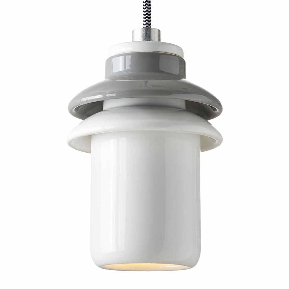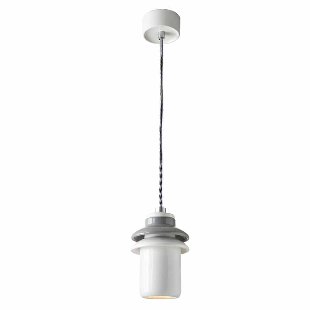 Hergestellt in Italien von erfahrenen weißen und grauen Keramikhandwerkern, mit schwarzen und weißen Tuchkabeln und der Aluminiumkabelklemme. Lassen Sie sich von der einfachen Funktionalität Asiens mitreißen!