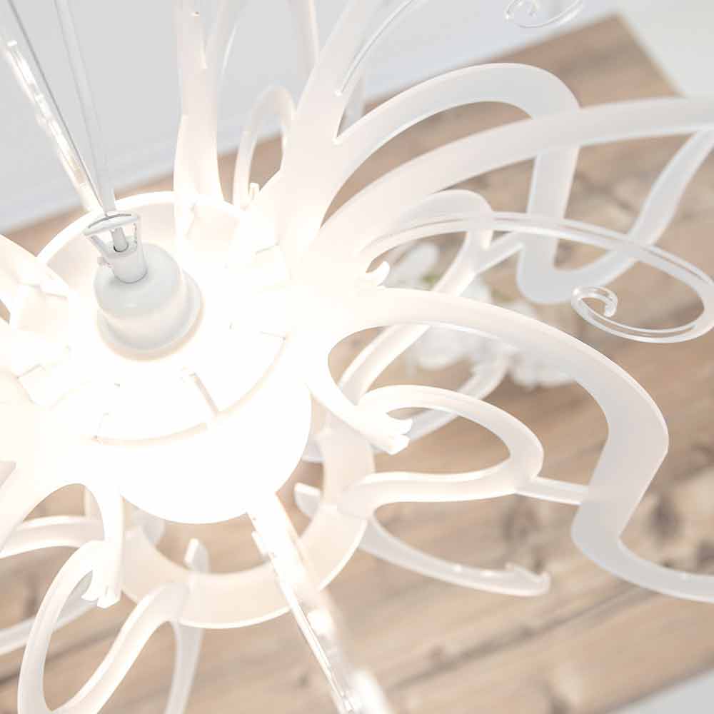 Malito ist ein majestätischer Kronleuchter aus reinem Polymer-PMMA-Plexiglas in Weiß oder Schwarz .