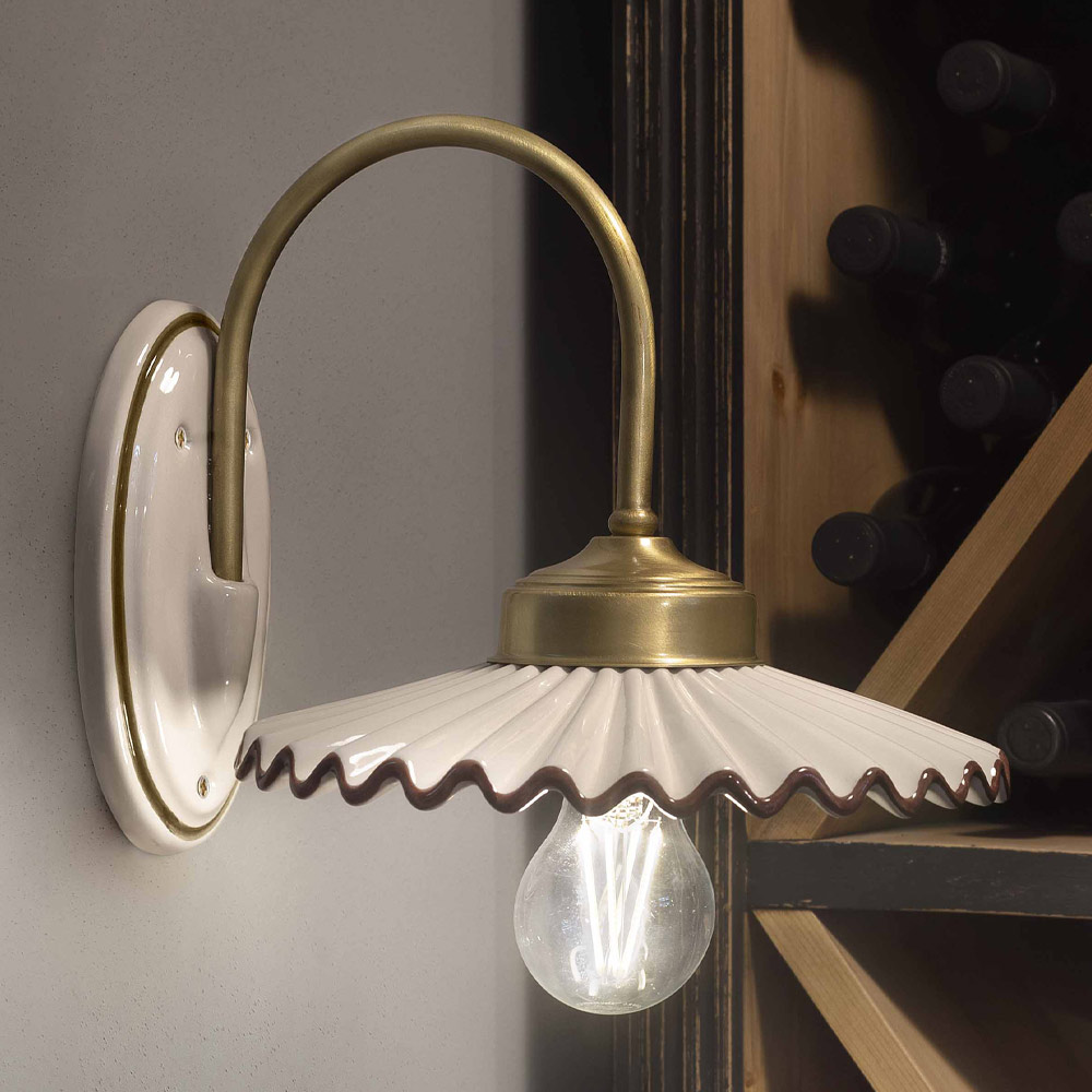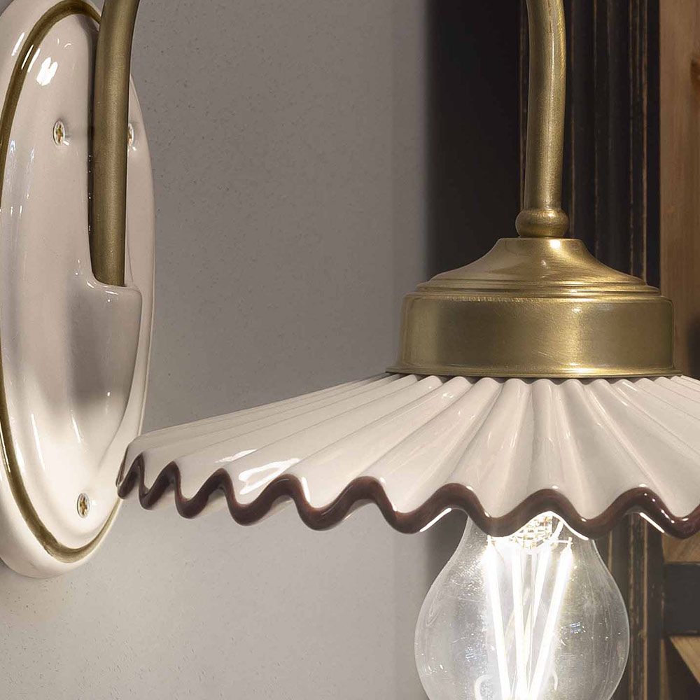 Wandlampe aus plissierter, glänzender Keramik und handgemalter Bordüre, hergestellt in Italien von Ferroluce.