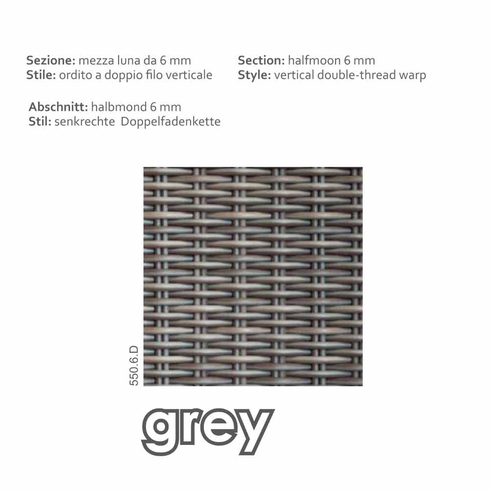 Mark ist ein original flexibel einsetzbarer Loungetisch aus Polyrattan in einen modernen handgeflochtenen Flechtdesign. MIt seinem stabilen Alurahmen und mit der von Hand geflechteteten Struktur bringt der Loungetisch ein angenehmes Urlaubsfeeling direkt zu Ihnen nach Hause. Die Oberflächenverdelung des Polyrattan Geflechtes aus 6 mm Durchmesser ist in der Farbe taubengrau erhältlich.