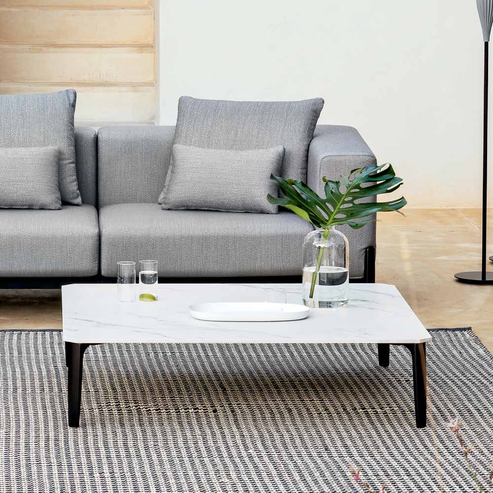 Es ist das Detail des Beines aus Aluminiumguss , das diesem Couchtisch für den Garten das raffinierte Design verleiht, das ihn auszeichnet und in seiner formalen Gelassenheit personalisiert. Die raffinierte Wesentlichkeit der Linien und Volumen wird mit den Materialien kombiniert, um einen eleganten und konstruktiv soliden visuellen Effekt zu erzielen, der sowohl die Innen- als auch die Außenumgebung verbessert.