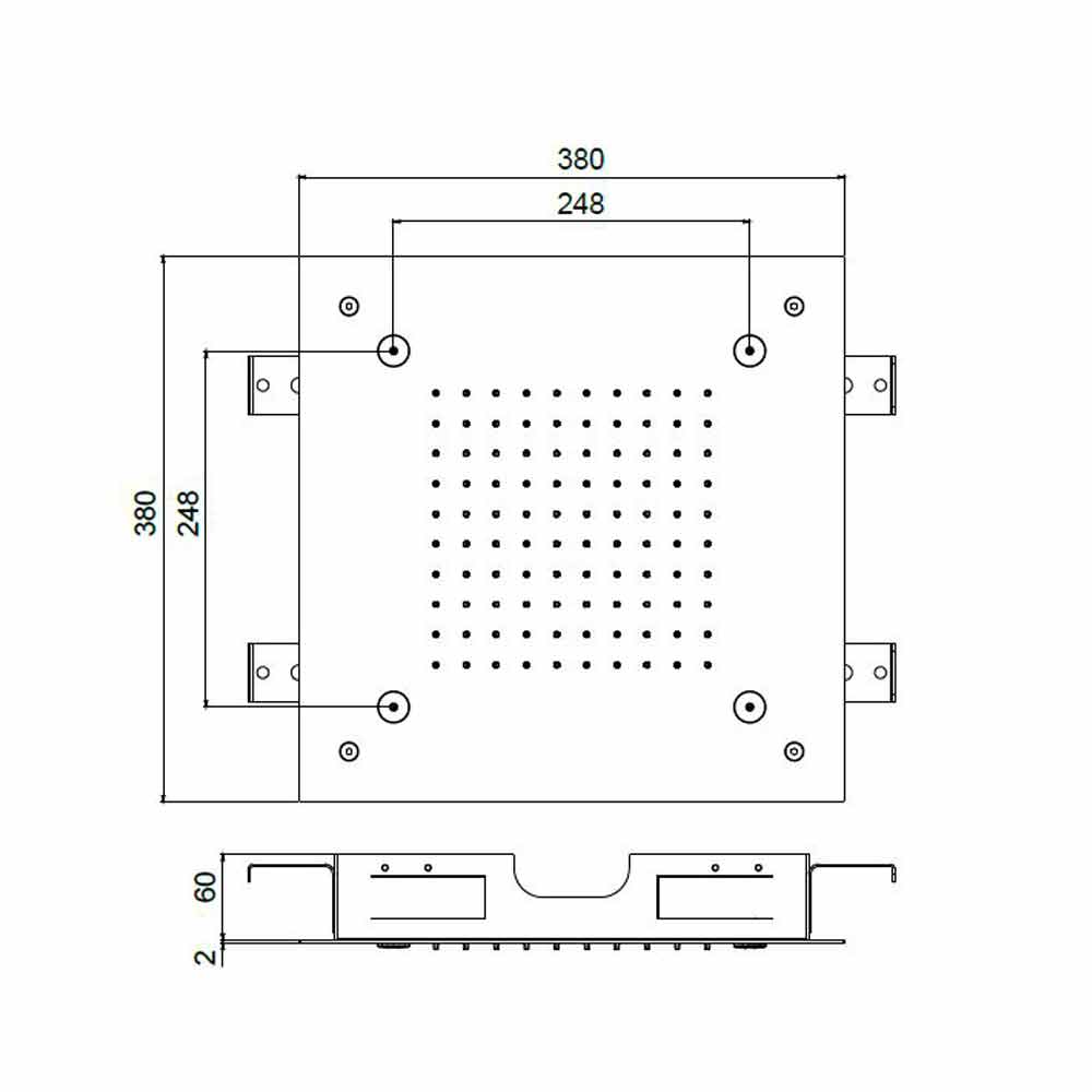Quadratischer Duschkopf aus Stahl mit Doppelstrahl, hochwertiges Designobjekt, Made in Italy.