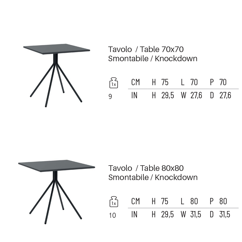 Quadratischer Gartentisch aus verzinktem Stahl Made in Italy - Ralph
