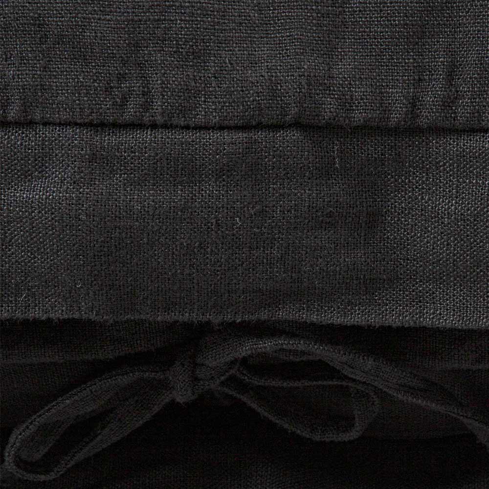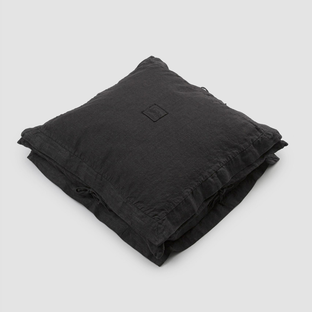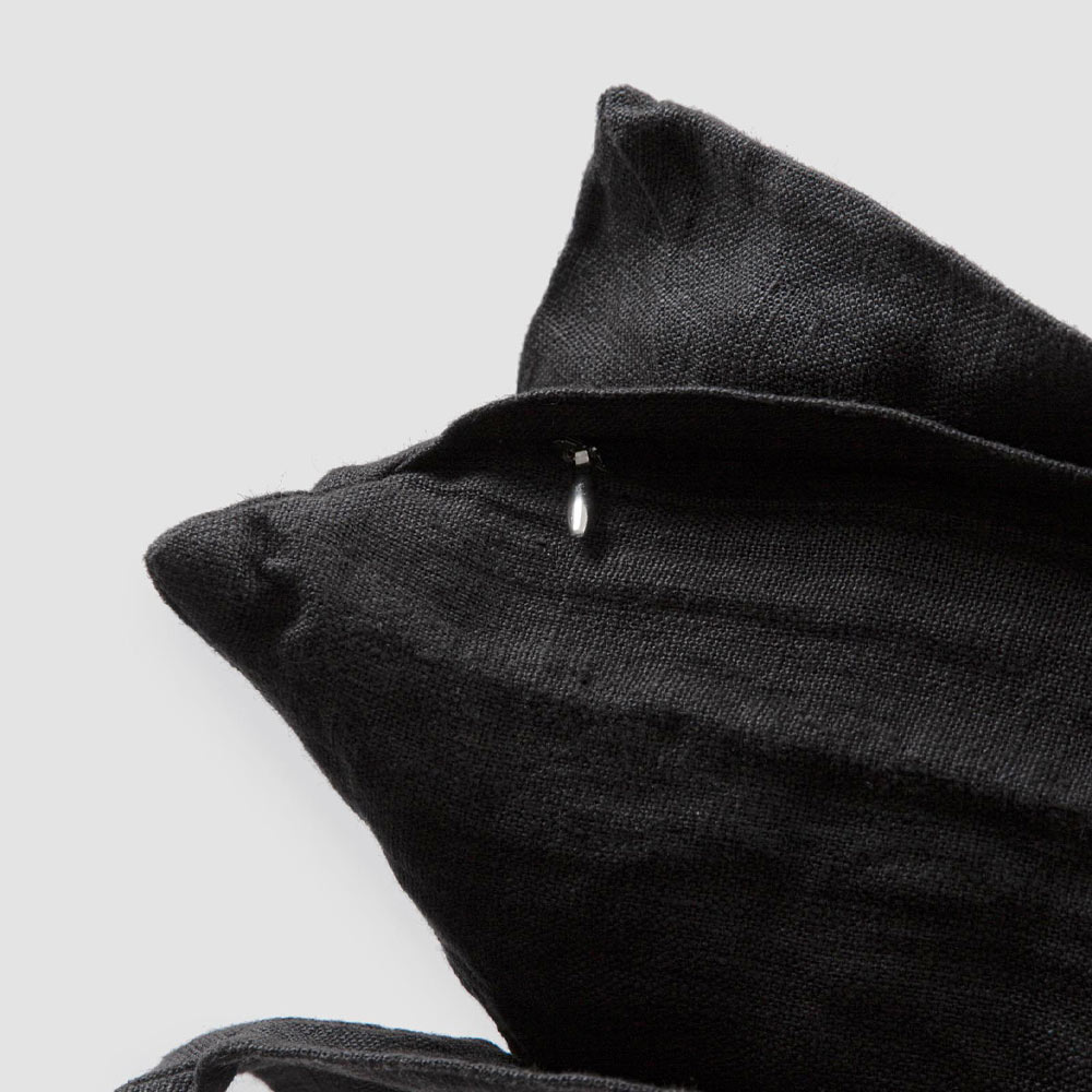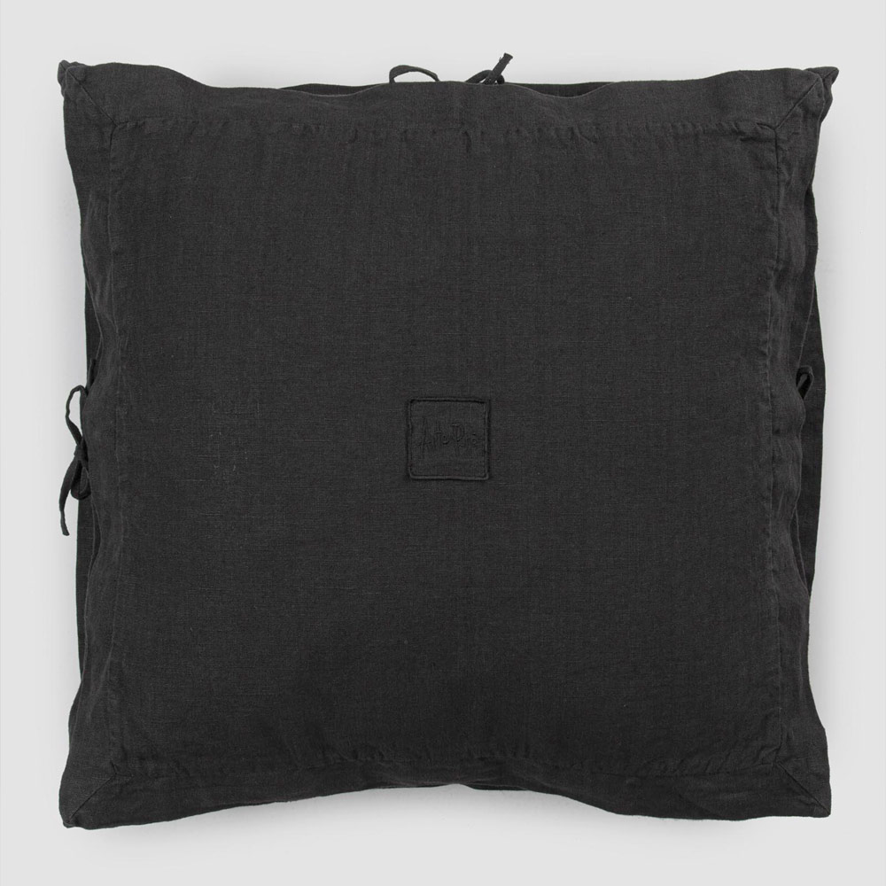 Dekorativer Kissenbezug aus schwarzem Leinen mit quadratischen Schnürsenkeln, hergestellt in italienischer Qualität.